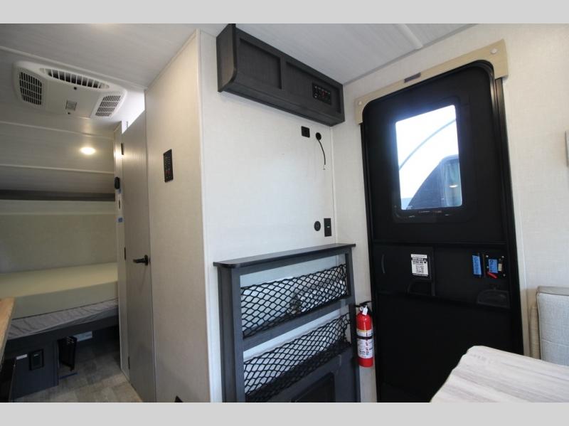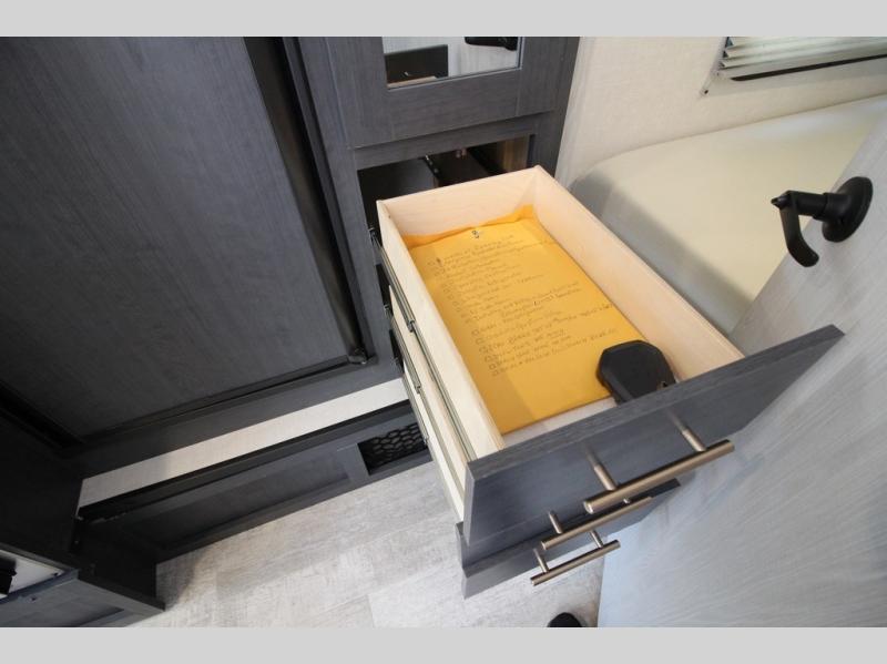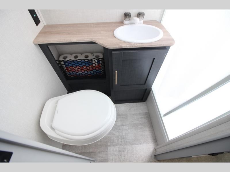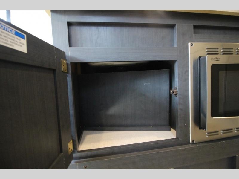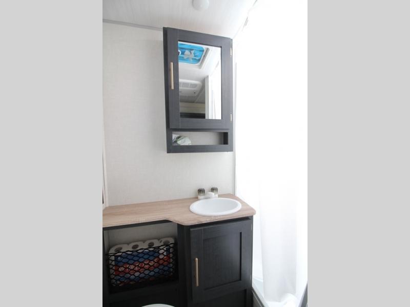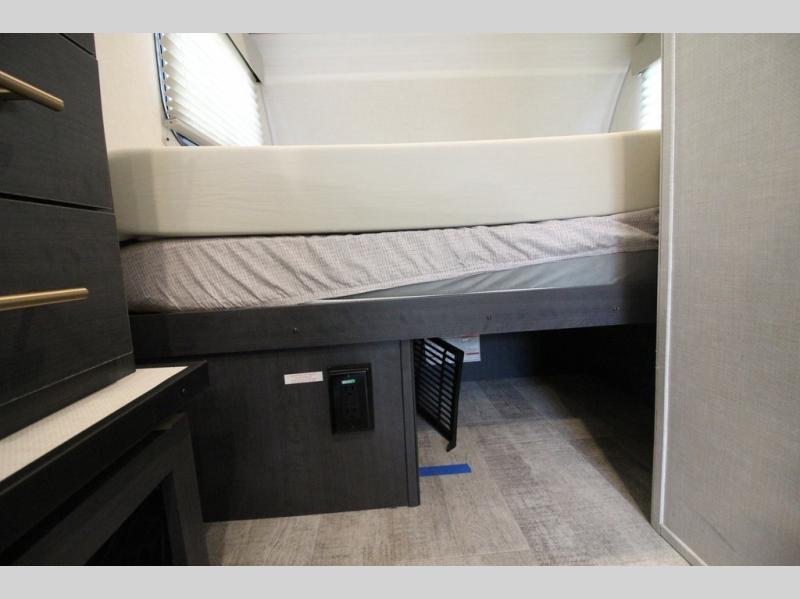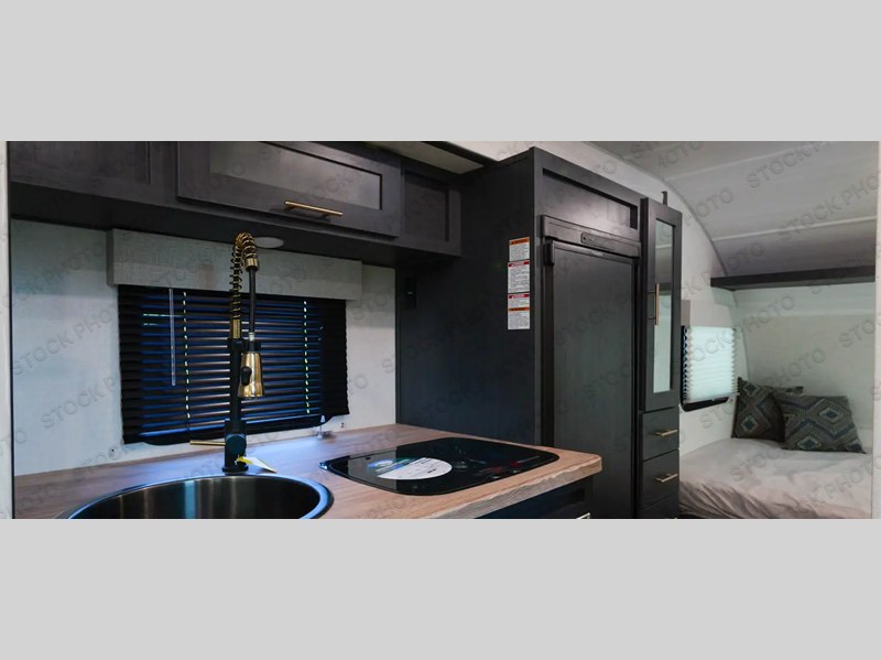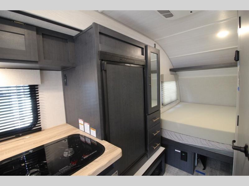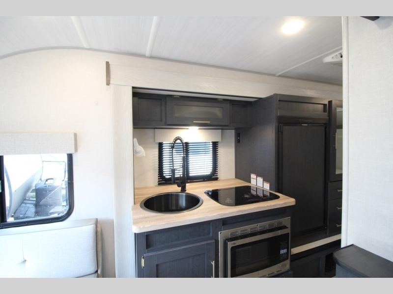 With any R Pod Classic travel trailer by Forest River, you will enjoy at home-comforts and lightweight towing. There are magnetic door catches that will easily keep the door open when you're packing hiking gear or bringing in your luggage. Each model includes 30 Amp service with a detachable power cord, a 20 lb. propane tank with a cover, and a high efficiency roof-mounted air conditioner that will keep you cool during the summer camping months. Inside, you'll find a two burner recessed cooktop with a flush mount glass cover, a convection microwave, and new Cosmetic Graphite interior for a modern look you will love.