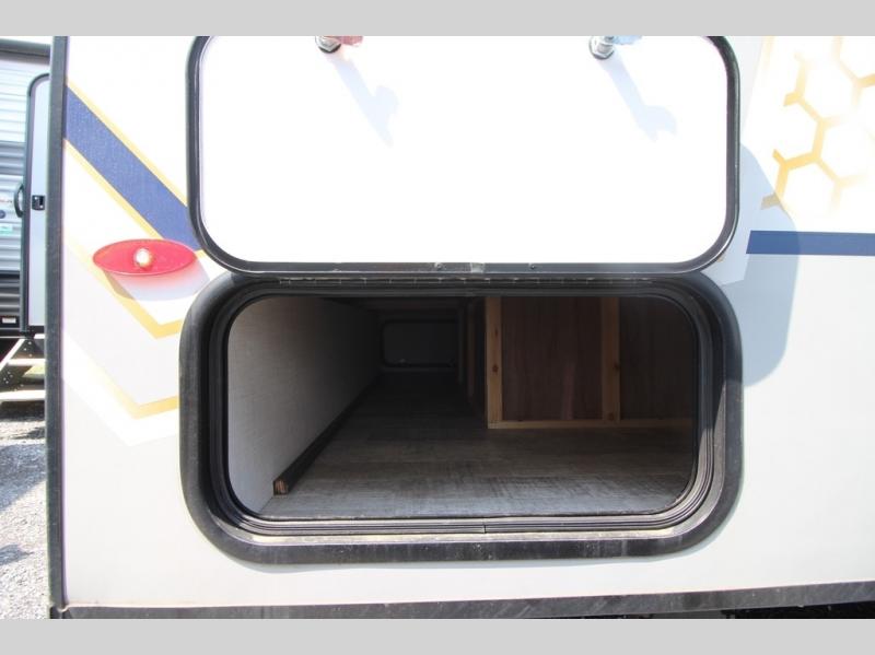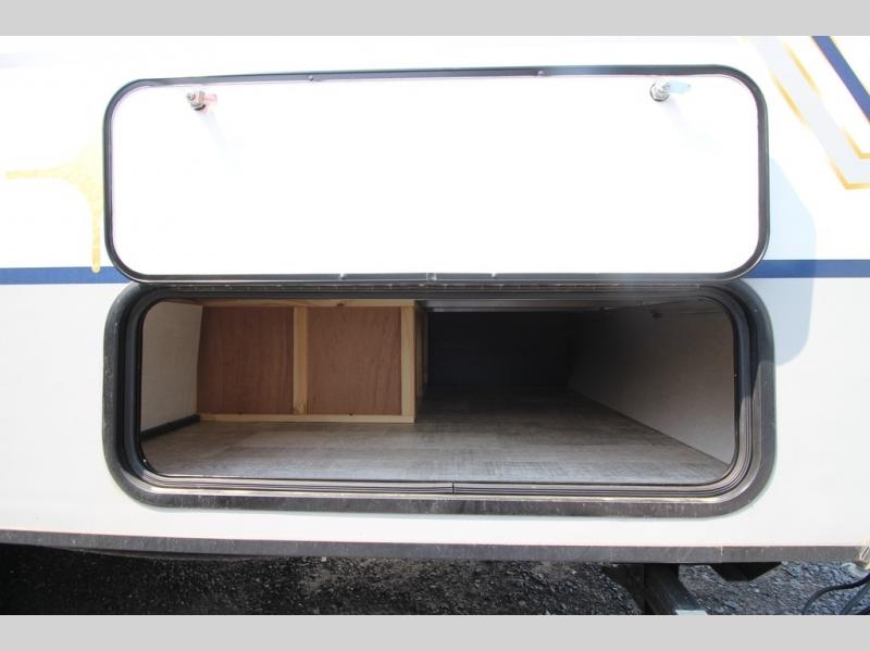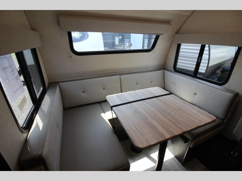 For the couple who is ready to camp anytime and anywhere, you will love how easy it is to travel with this R Pod travel trailer. You can easily set up the single slide to give you more room to move about. Within this slide, you will find the kitchen amenities, which include a two-burner cooktop, convection microwave and a refrigerator. You can enjoy your meals at the U-shaped dinette, and this furniture can double as a sleeping space, if needed. Along the front is an RV queen bed where you can rest up for another day of fun and adventure. With all of the exterior storage, you can bring along all of your necessary camping items and more!