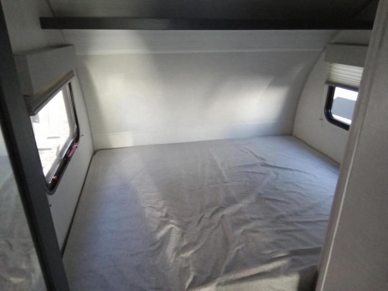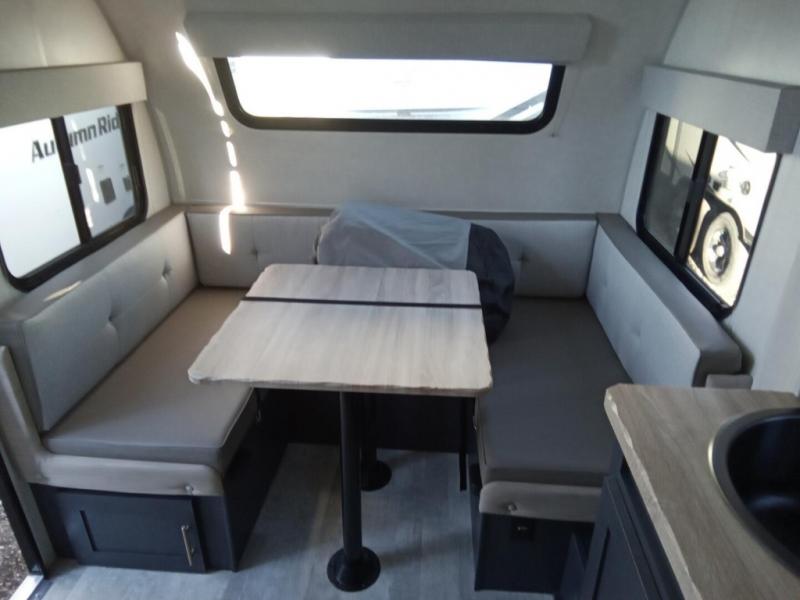 For the couple who is ready to camp anytime and anywhere, you will love how easy it is to travel with this R Pod travel trailer. You can easily set up the single slide to give you more room to move about. Within this slide, you will find the kitchen amenities, which include a two-burner cooktop, convection microwave and a refrigerator. You can enjoy your meals at the U-shaped dinette, and this furniture can double as a sleeping space, if needed. Along the front is an RV queen bed where you can rest up for another day of fun and adventure. With all of the exterior storage, you can bring along all of your necessary camping items and more!