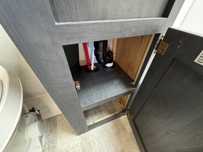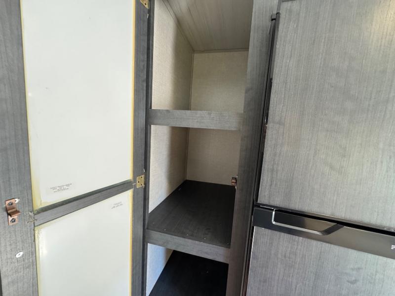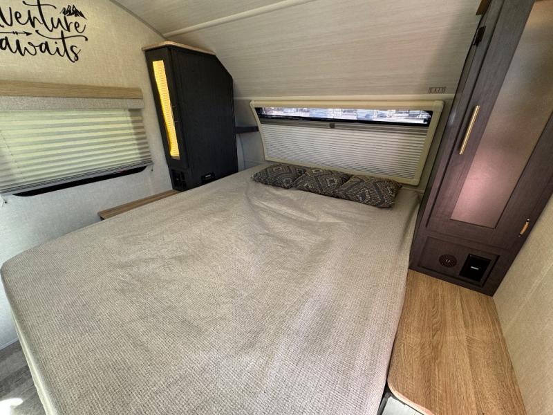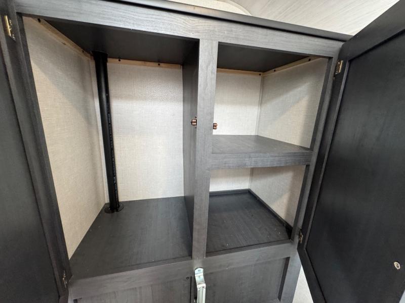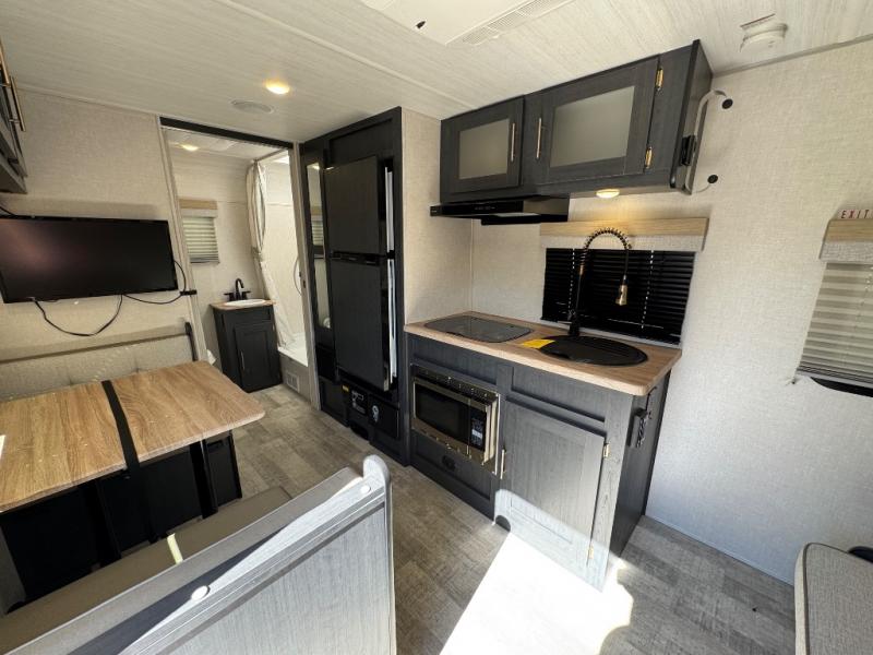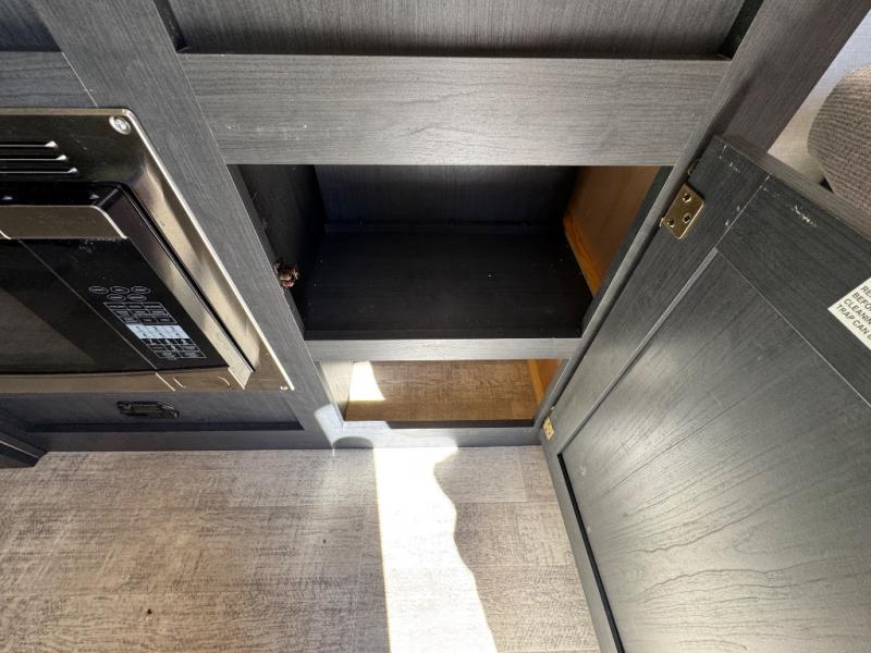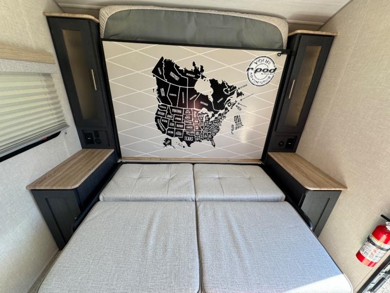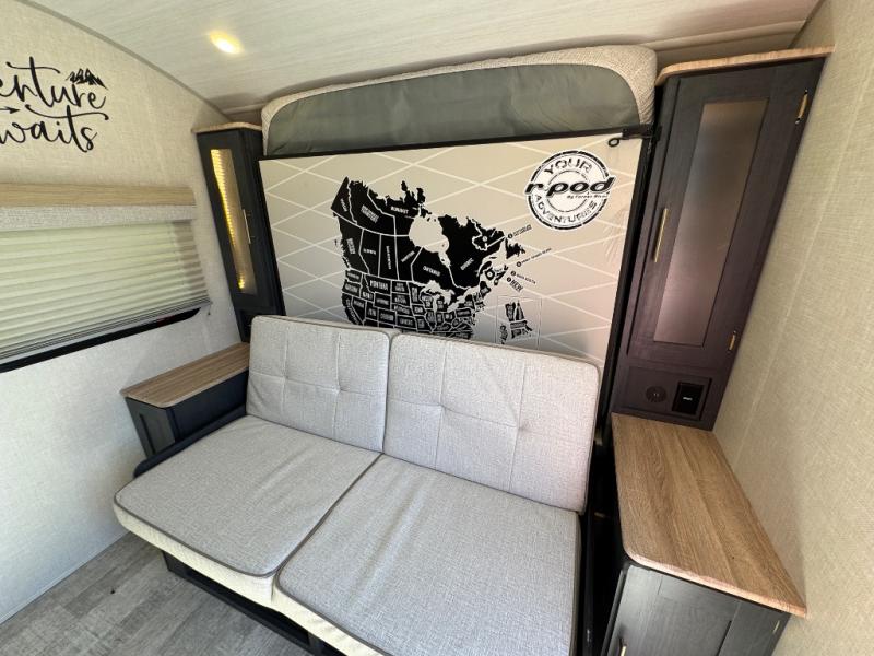 You're going to love all of the conveniences and versatility of this R Pod travel trailer! The front Murphy bed can fold away to reveal a sofa which gives you a comfortable place to sit during the day and to sleep at night too. The rear full bath features everything you will need to get squeaky clean each morning, as well as a large wardrobe for you to store your linens. After you have whipped up your best meal with the two-burner cooktop or convection microwave, you can head to the 30" x 75" booth dinette and enjoy eating it there comfortably. There is plenty of storage space inside, but if you need more space, then you can use the exterior pass-through storage!