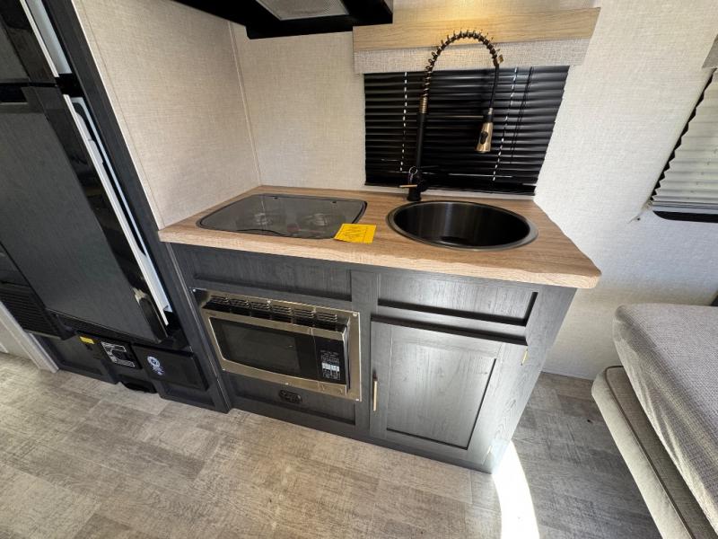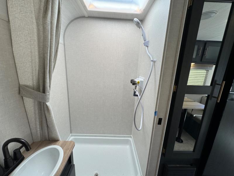 With any R Pod travel trailer by Forest River, you will find affordable luxury and lightweight towing! The Azdel sidewall construction and aluminum framing provide a durable RV made to last, and you'll love the new premium exterior graphics! There is also a tire pressure monitoring system outside, along with a friction hinge entrance door, a power tongue jack, and an exclusive aluminum wheel upgrade. Head inside to enjoy butcher block countertops, multipurpose vinyl furniture, a Showermiser water system, and new Cosmic Graphite decor. The large solar panel will provide off-gird capabilities, plus there is a 2,000W inverter and 30A charge controller for added convenience!
