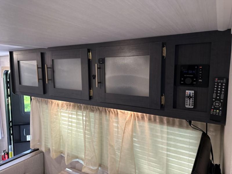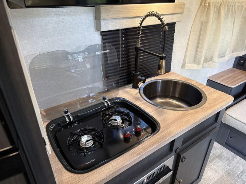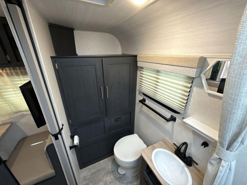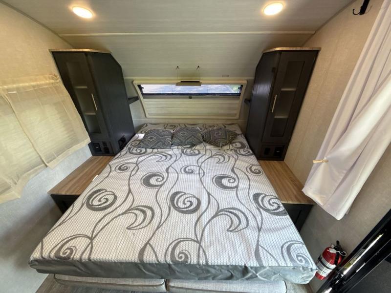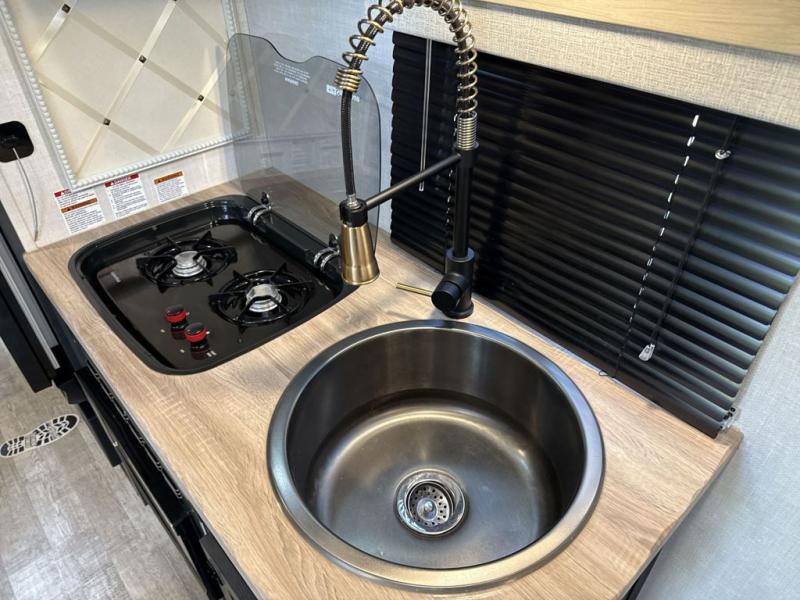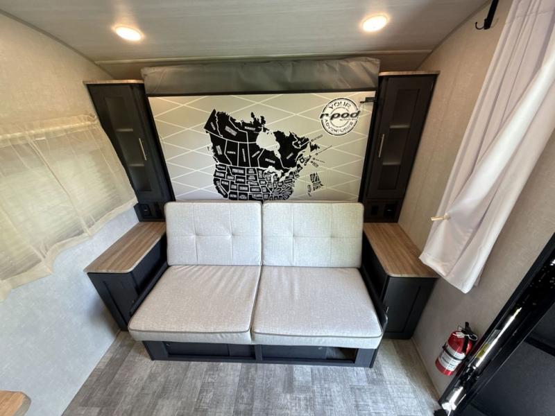 You're going to love all of the conveniences and versatility of this R Pod travel trailer! The front Murphy bed can fold away to reveal a sofa which gives you a comfortable place to sit during the day and to sleep at night too. The rear full bath features everything you will need to get squeaky clean each morning, as well as a large wardrobe for you to store your linens. After you have whipped up your best meal with the two-burner cooktop or convection microwave, you can head to the 30" x 75" booth dinette and enjoy eating it there comfortably. There is plenty of storage space inside, but if you need more space, then you can use the exterior pass-through storage!