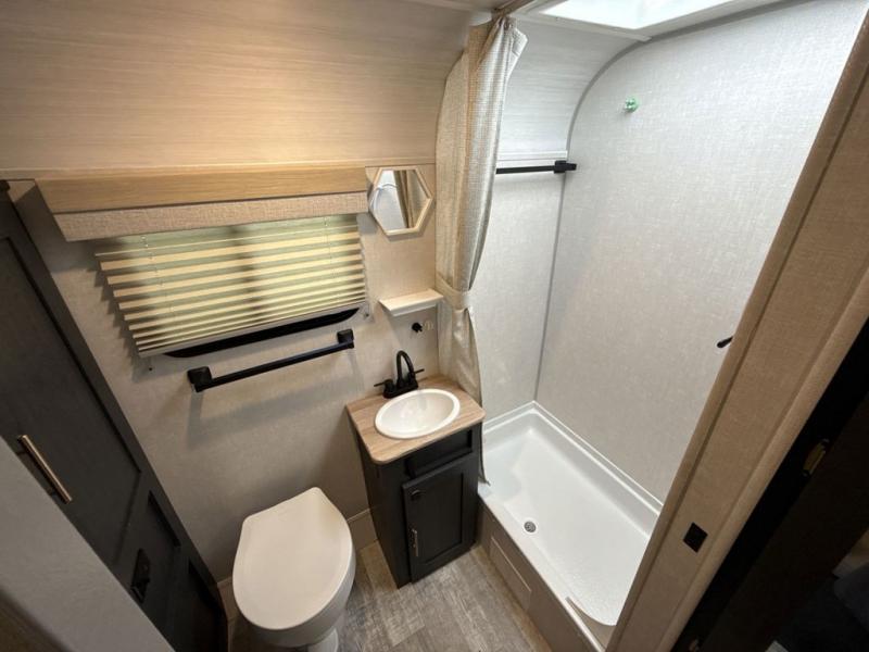 With any R Pod travel trailer by Forest River, you will find affordable luxury and lightweight towing! The Azdel sidewall construction and aluminum framing provide a durable RV made to last, and you'll love the new premium exterior graphics! There is also a tire pressure monitoring system outside, along with a friction hinge entrance door, a power tongue jack, and an exclusive aluminum wheel upgrade. Head inside to enjoy butcher block countertops, multipurpose vinyl furniture, a Showermiser water system, and new Cosmic Graphite decor. The large solar panel will provide off-gird capabilities, plus there is a 2,000W inverter and 30A charge controller for added convenience!