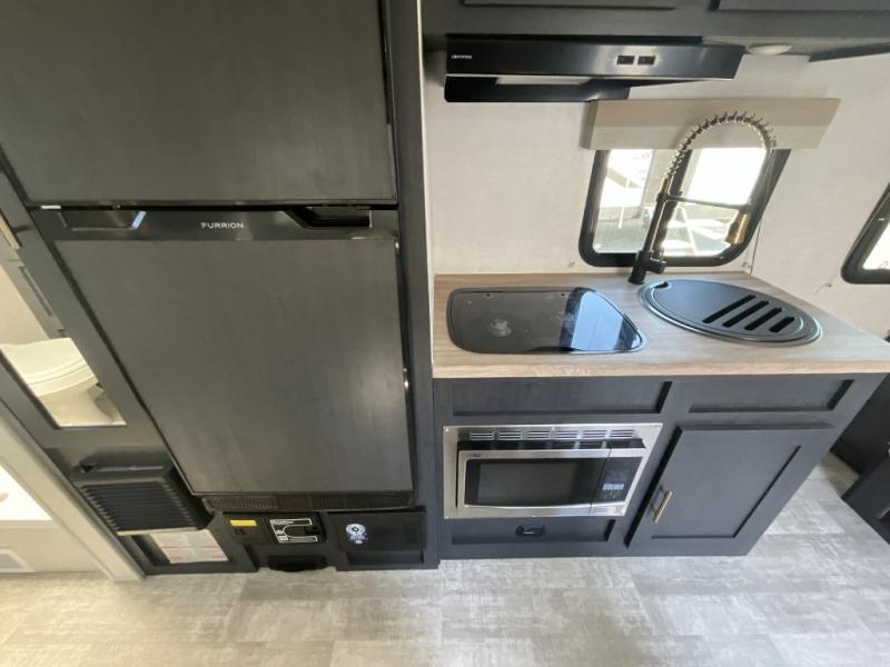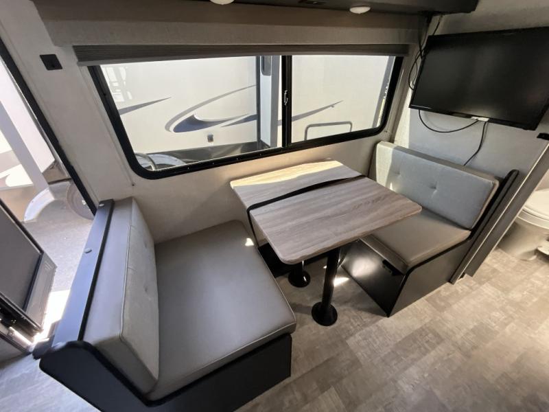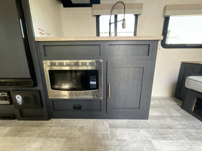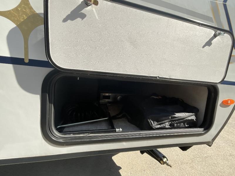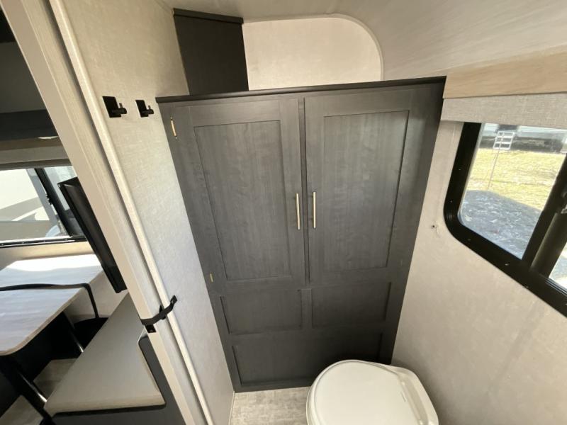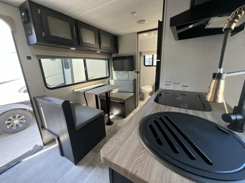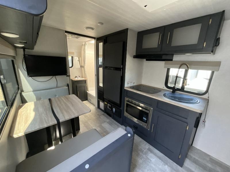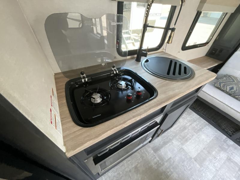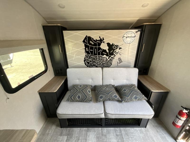 You're going to love all of the conveniences and versatility of this R Pod travel trailer! The front Murphy bed can fold away to reveal a sofa which gives you a comfortable place to sit during the day and to sleep at night too. The rear full bath features everything you will need to get squeaky clean each morning, as well as a large wardrobe for you to store your linens. After you have whipped up your best meal with the two-burner cooktop or convection microwave, you can head to the 30" x 75" booth dinette and enjoy eating it there comfortably. There is plenty of storage space inside, but if you need more space, then you can use the exterior pass-through storage!