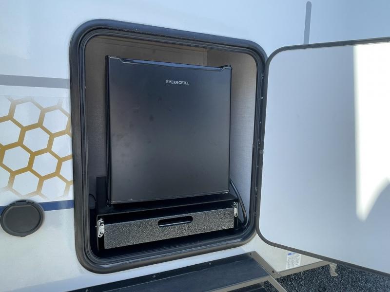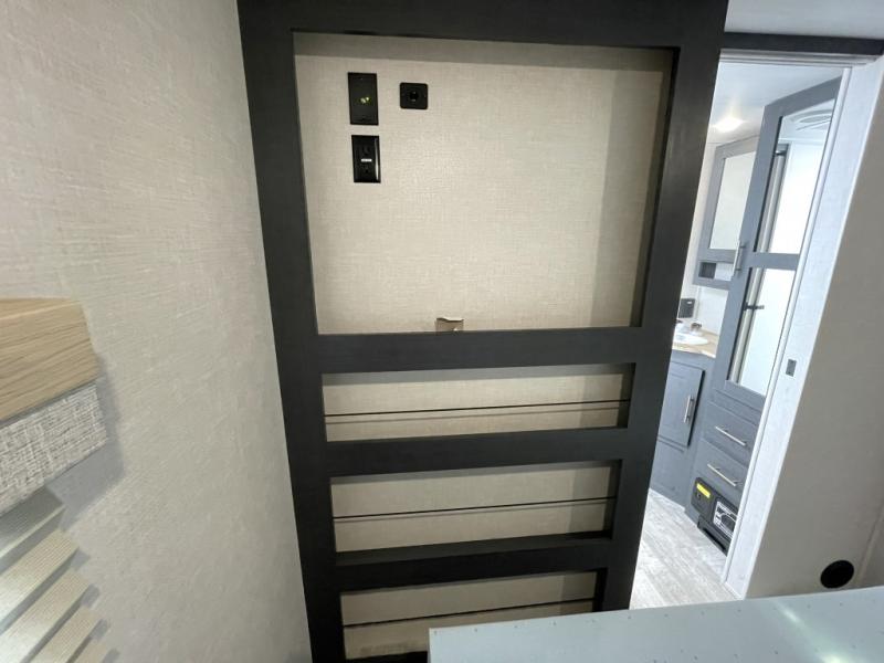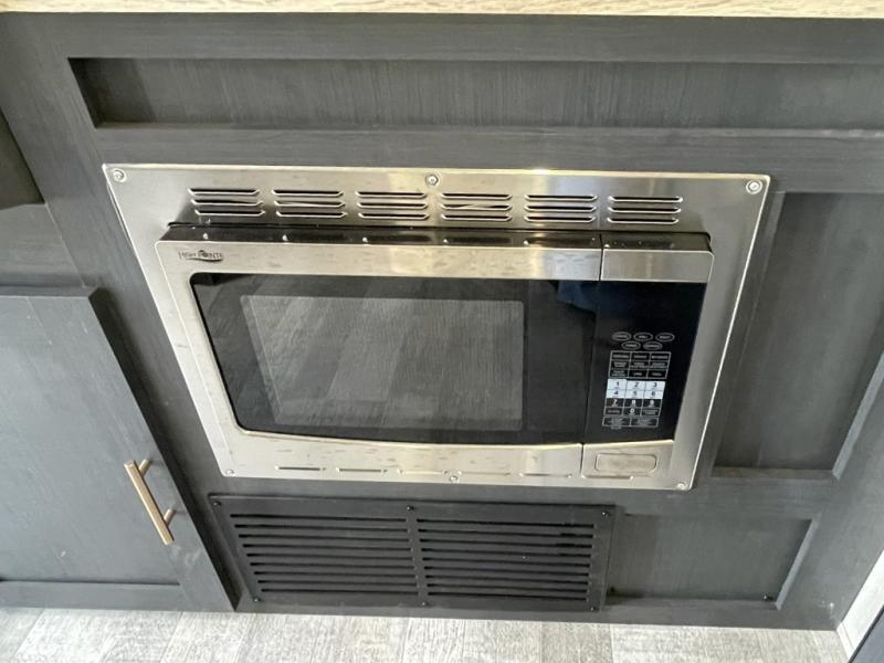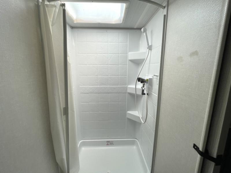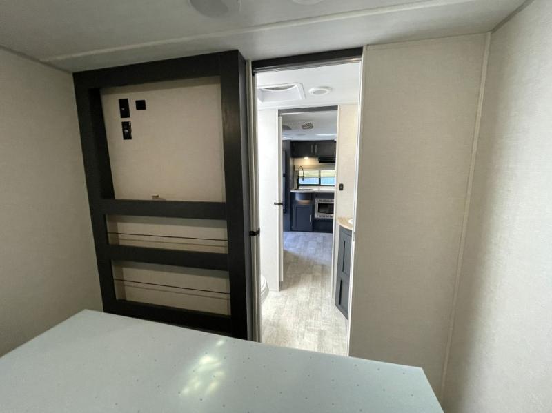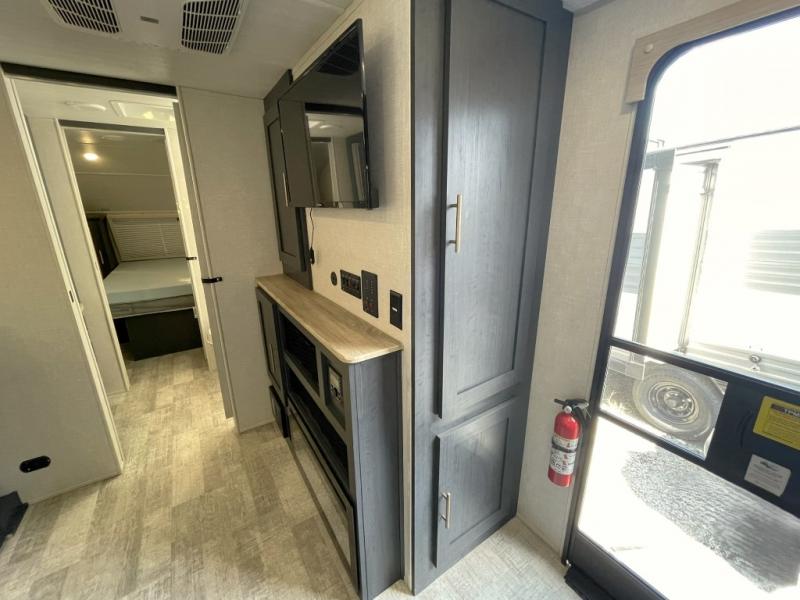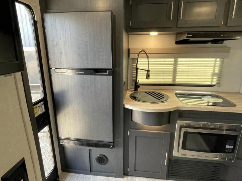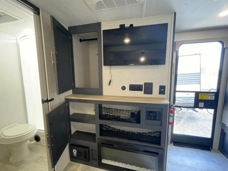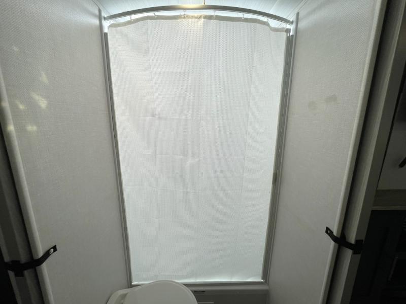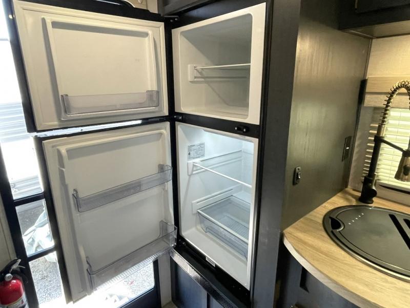 The RP-202 is packed with features that make it a standout in the world of travel trailers. Step inside and you’ll immediately notice the spacious walk-through bathroom, designed for maximum comfort and privacy. The private bedroom features a walk-around RV queen bed, flanked by dual wardrobes, so you never have to compromise on clothing or gear storage.