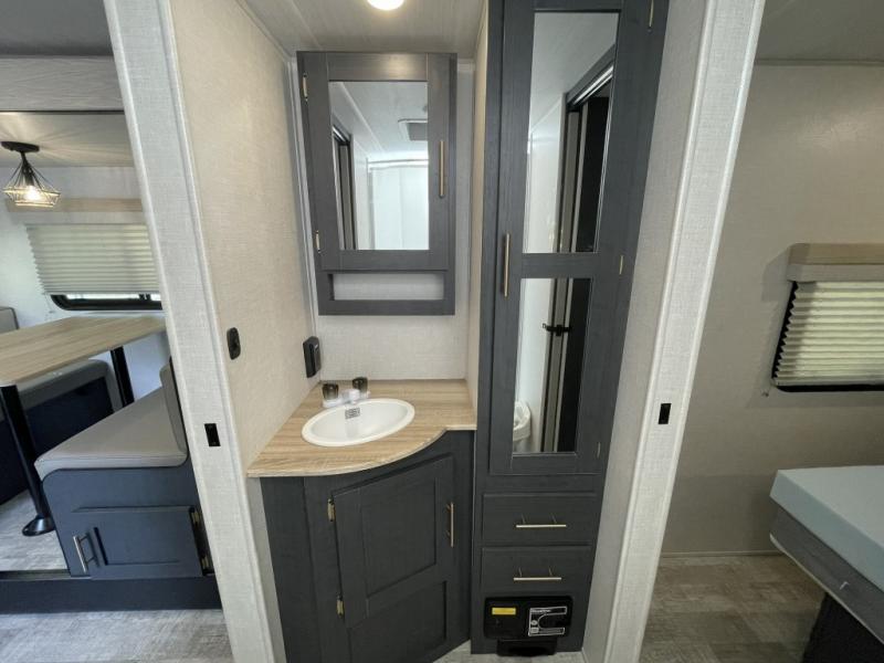 Front Queen Bed, Booth Dinette, Rear Kitchen, Walk-Thru Bath, Outside Griddle & Sink - Campers Inn RV of Louisville 812-282-7718