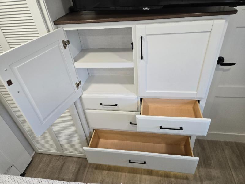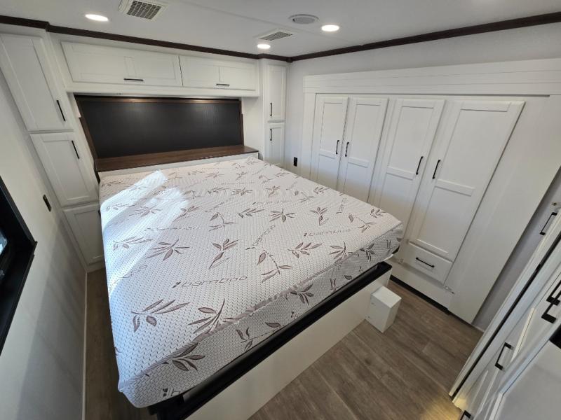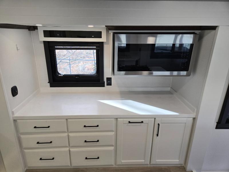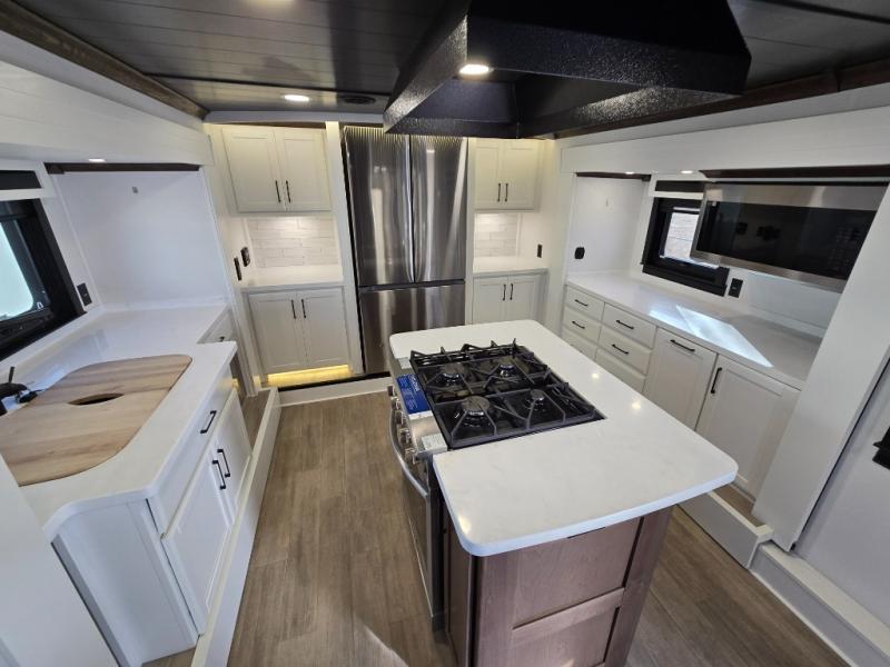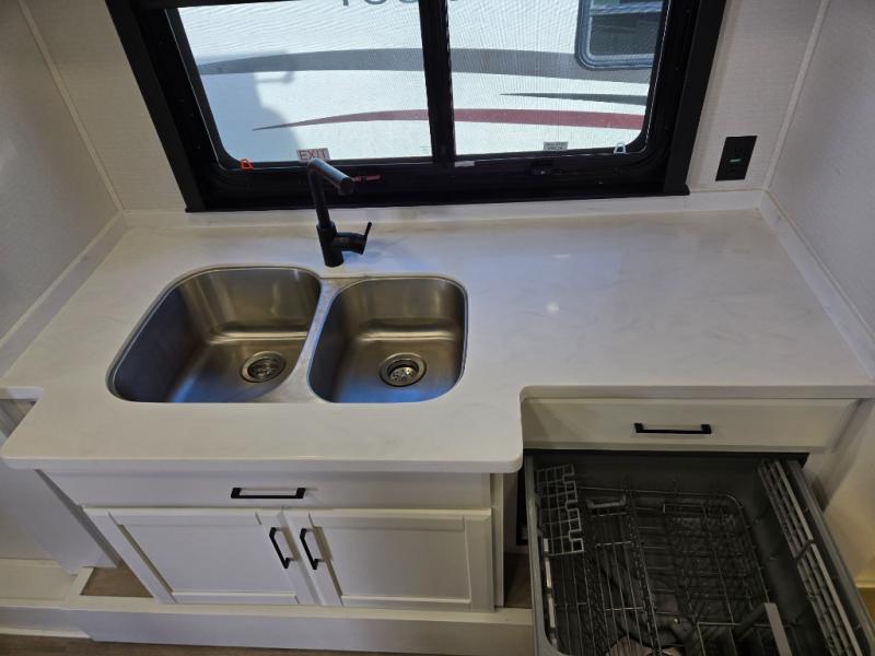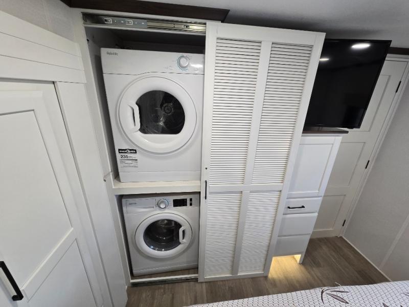 The Forest River RiverStone fifth wheels and toy haulers are luxurious units that have it all! You'll find an automatic six-point hydraulic level-up system to keep your unit in place, and there is preparation for a four-camera observation system. The King Wi-Fi Max router and omni-directional Wi-Fi antenna/extender will help you stay connected to the outside world, and you'll never have to overpack again since the Splendid “Astral” stackable washer and dryer will let you clean the small amount of clothes you've brought with you. Another high luxury is the Fischer Paykal dishwasher which will allow you to spend more time enjoying your camp life and less time cleaning up. Each unit is built with a Trail-Aire Road Armour suspension system, dual-pane frameless windows, a full docking station, a 190W solar panel, and a Firefly integrated touch control system.