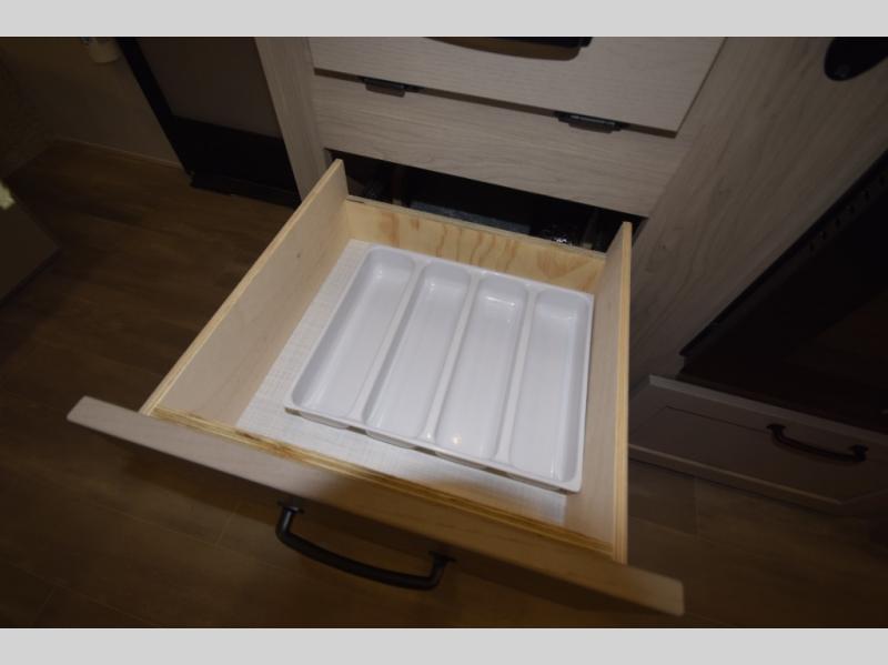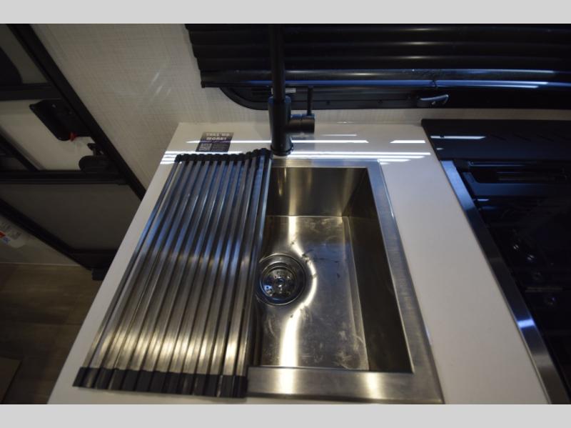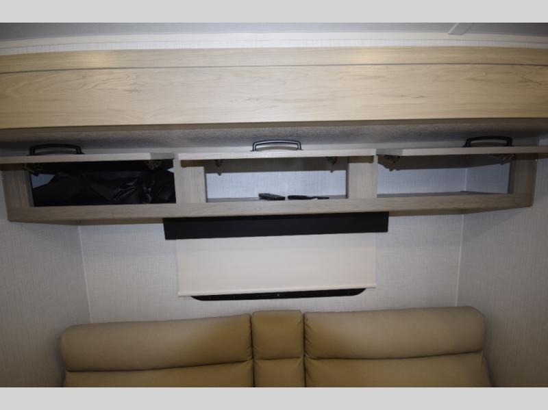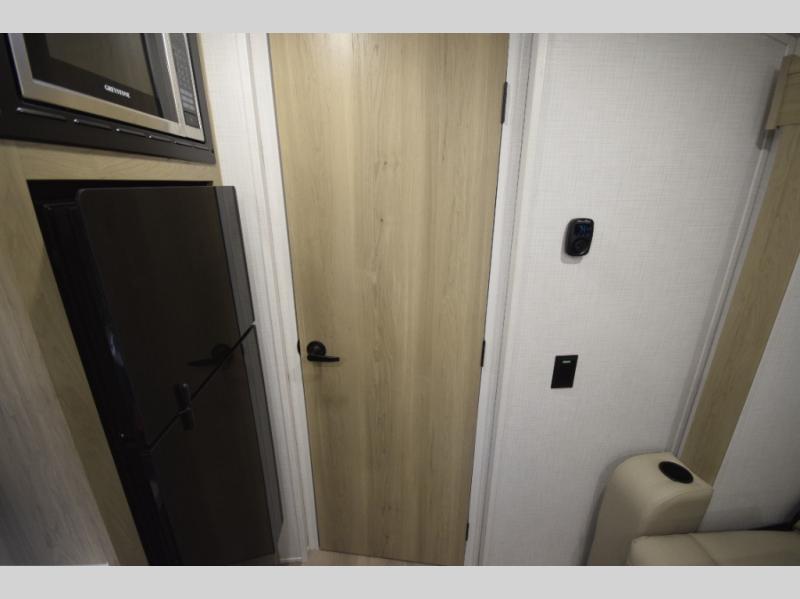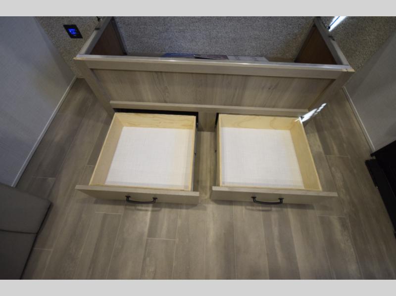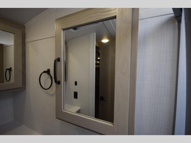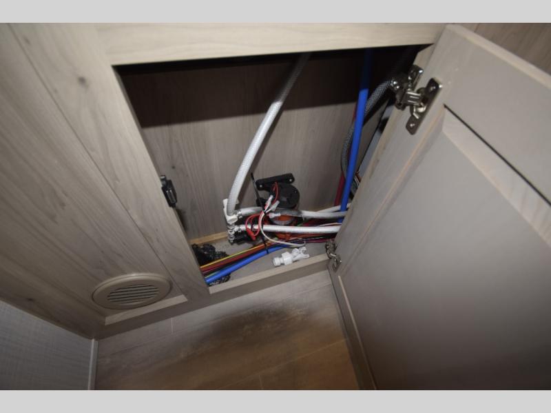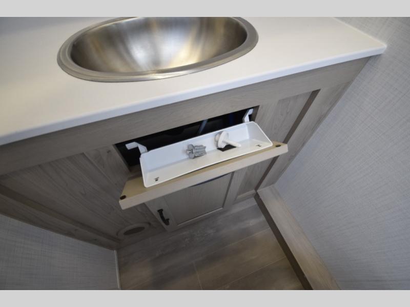 Need to freshen up? The full rear bath includes a roomy shower and a linen closet for extra towels and toiletries. Mealtime is easy with a three-burner cooktop, microwave oven, and an outdoor griddle so you can sizzle breakfast with the sunrise or grill burgers after a long hike.