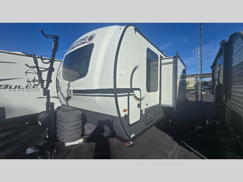 With any Rockwood GEO Pro travel trailer by Forest River you will enjoy easy towing, durable construction, and off-road capabilities with larger 15" tires and a lift kit! Package A includes a 200W solar panel and an 1800W inverter to go off-grid when you want, a tire pressure monitoring system and Key Alike door and compartment locks, plus a power awning to relax outdoors. Each model is constructed with complete composite wall construction for added strength and durability, and the torsion axle, Rubber-Ryde suspension will make towing easier than ever. Inside, you'll find sleek roller shades and hidden hinge cabinet doors, a 12V refrigerator and a microwave, plus a 20,000 BTU furnace to keep you warm during the colder camping months.
