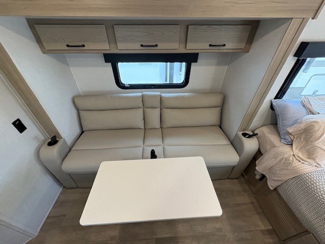 This is the perfect couple's trailer, so sneak away for a weekend in the woods. There is a 72" sofa with cupholders with a table that will be perfect for meals times and relaxing. This model includes a 32" 12V TV to keep you busy on those rainy days, and the queen bed will provide a great night's rest. This model also includes an outside griddle and an 11' power awning so you can enjoy those nice days outdoors!