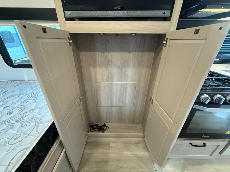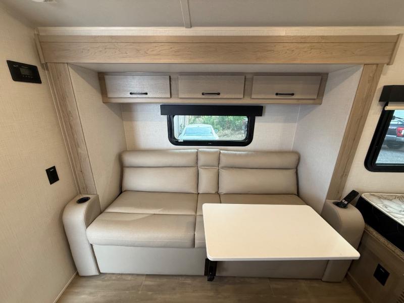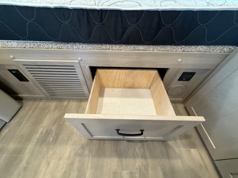 This is the perfect couple's trailer, so sneak away for a weekend in the woods. There is a 72" sofa with cupholders with a table that will be perfect for meals times and relaxing. This model includes a 32" 12V TV to keep you busy on those rainy days, and the queen bed will provide a great night's rest. This model also includes an outside griddle and an 11' power awning so you can enjoy those nice days outdoors!