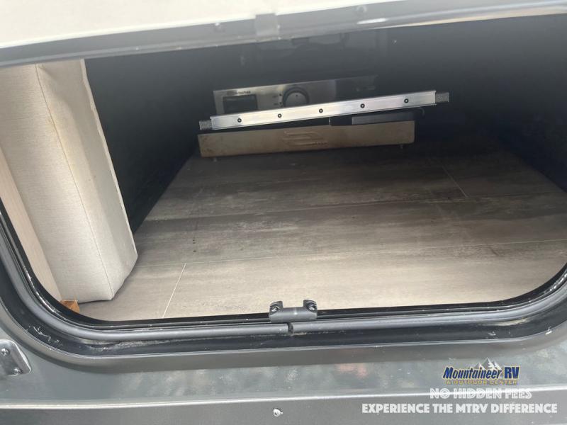 You will love how versatile this travel trailer is thanks to the Murphy bed up front. After you've had a great night's rest, just fold it up to relax on the 72" sofa. This will give the chef more space in the morning to prepare breakfast on the three burner cooktop or in the microwave oven. There is a 32" booth dinette to dine at, or you may just want to take your plate outdoors under the 14' power awning. The full rear bath includes a large linen closet to store clean towels and there is a Showermiser Water Saver you are sure to appreciate. You will appreciate a pass-through storage, plus additional exterior storage so you can bring along hiking gear, water tubes, and fishing poles! The optional Power Package available on this model includes three 200W solar panels, a 30 Amp solar charge controller, two Mastervolt smart remotes, and more off-grid features!