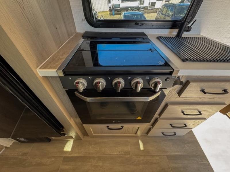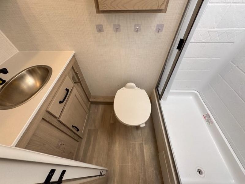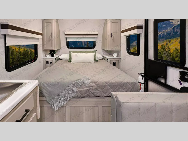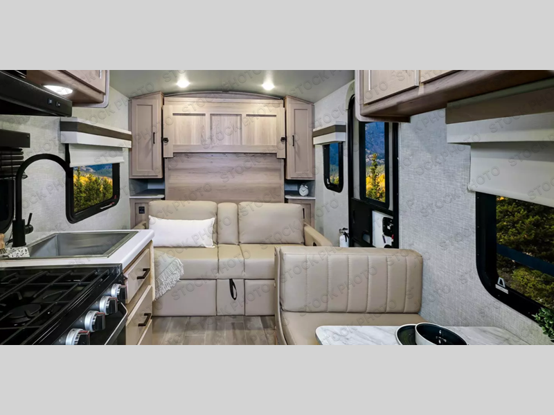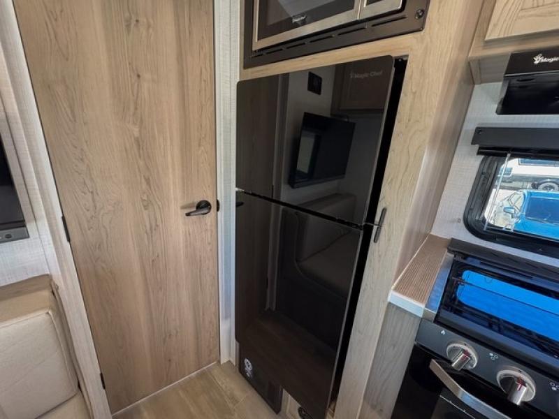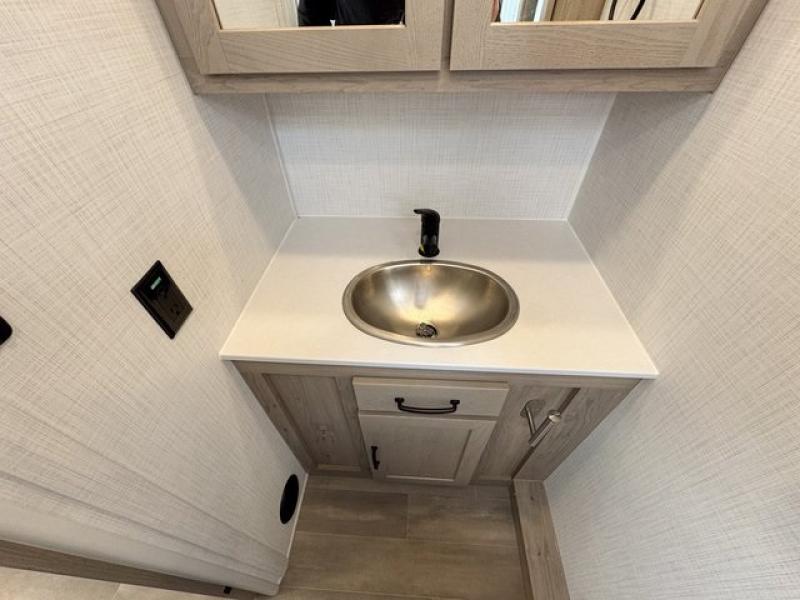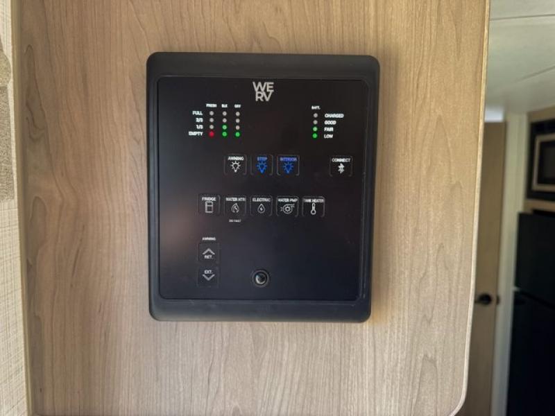 You will love how versatile this travel trailer is thanks to the Murphy bed up front. After you've had a great night's rest, just fold it up to relax on the 72" sofa. This will give the chef more space in the morning to prepare breakfast on the three burner cooktop or in the microwave oven. There is a 32" booth dinette to dine at, or you may just want to take your plate outdoors under the 14' power awning. The full rear bath includes a large linen closet to store clean towels and there is a Showermiser Water Saver you are sure to appreciate. You will appreciate a pass-through storage, plus additional exterior storage so you can bring along hiking gear, water tubes, and fishing poles! The optional Power Package available on this model includes three 200W solar panels, a 30 Amp solar charge controller, two Mastervolt smart remotes, and more off-grid features!