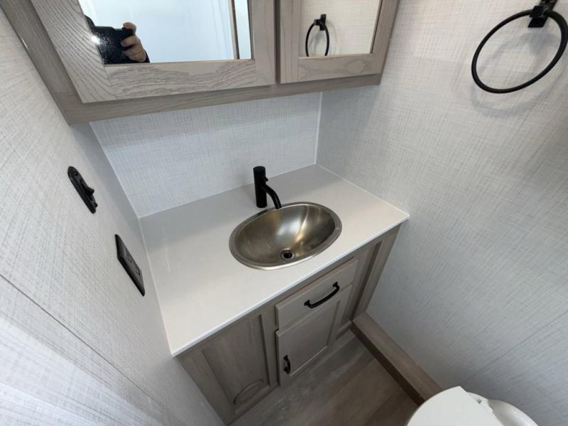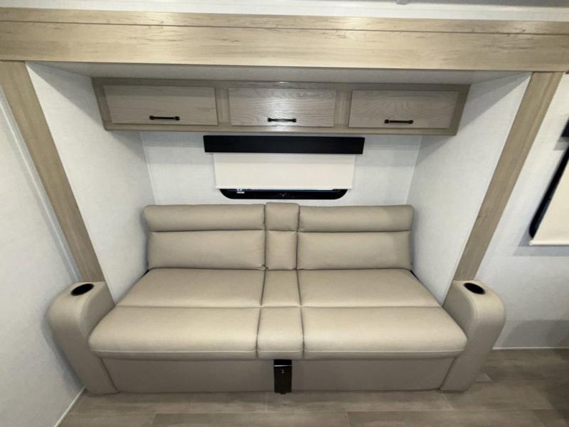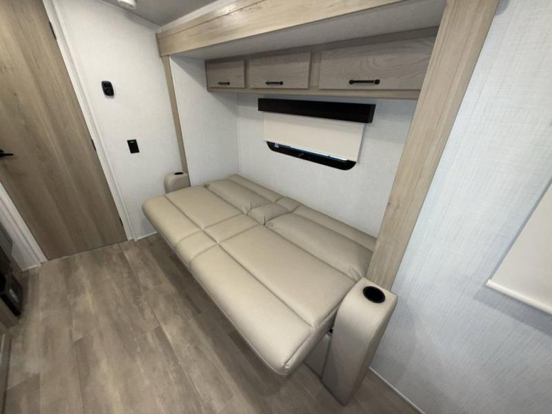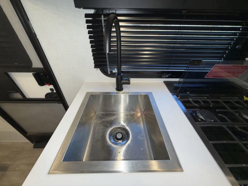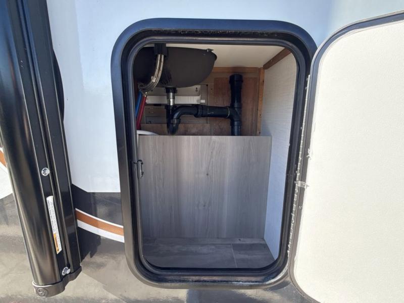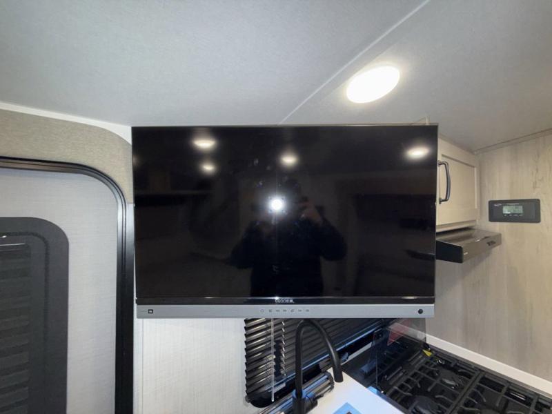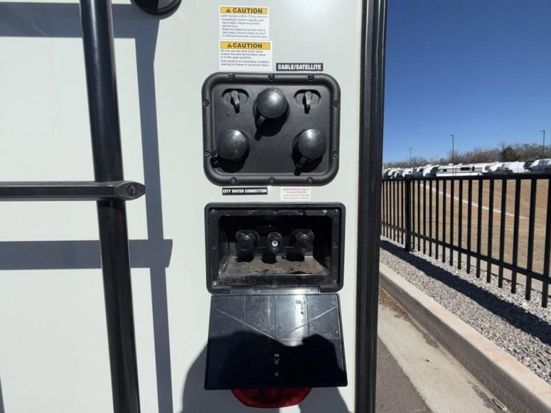 This travel trailer will feel more like home with its front bedroom and walk-around full-size bed. You'll enjoy the 32" 12V TV as you relax on the 72" sofa with a table and cupholders. The full rear bath includes a spacious shower to clean up in each day and there is a linen closet for clean towels. When you're ready to prepare dinner you'll have a three burner cooktop and microwave oven indoors, and a griddle outdoors! And don't forget the exterior storage allows you to bring along beach toys and tackle boxes. The optional Power Package available on this model includes three 200W solar panels, a 30 Amp solar charge controller, two Mastervolt smart remotes, and more off-grid features!