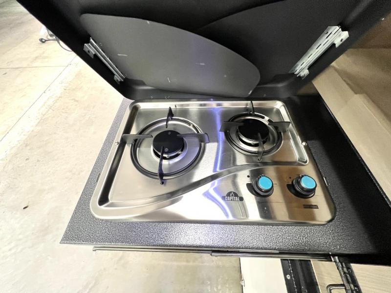 Whenever you decide to camp, hitch up and head out with your family of six or group of friends thanks to the two tent end beds and the U-shaped dinette slide out offering sleeping space for everyone! The interior also provides a 12-volt refrigerator, an oven and extra cabinet and counter space for your things. The cassette toilet offers convenience and the shower curtain allows you to wash off inside in privacy. The cook will enjoy having a slide out kitchen and griddle outdoors for more choices when feeding the crew, and the 13' awning offers some protection from the elements.
