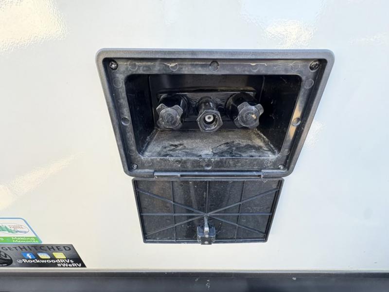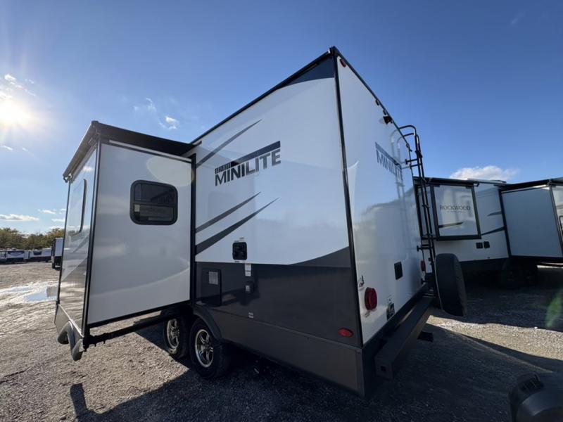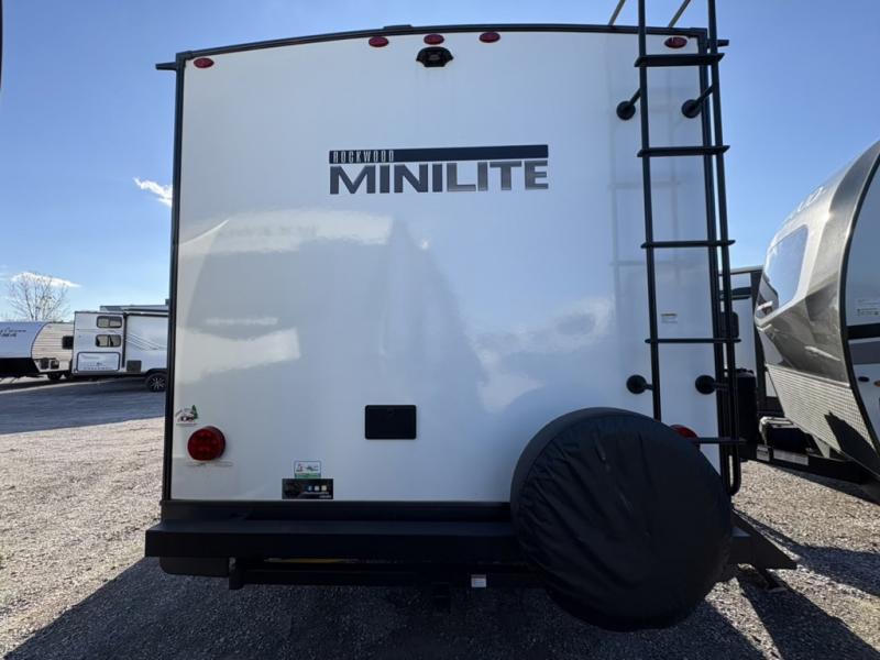 Each Rockwood Mini Lite travel trailer by Forest River is constructed with a fully laminated one-piece walkable roof, sleek frameless windows, and a six-sided full aluminum frame for strength and durability. The 12V thermostatically controlled heated tanks, plus radiant foil in the underbelly, front caps, and slide out floors will allow you to camp well into the colder months, and the 200W roof solar panel will be perfect for a little off-gridding. Each model includes solid surface kitchen countertops, solid wood cabinet doors, night roller shades, plus many more interior features. Having an Air 360+ omnidirectional antenna with wifi prep on board will allow you to get some work done if it's needed, and the power tongue jack provides hassle-free set up, so you can enjoy more time relaxing!