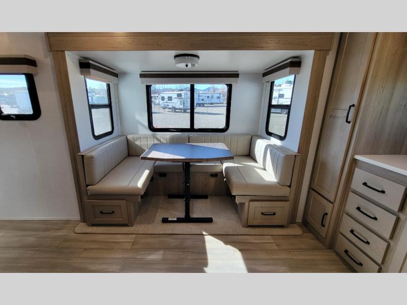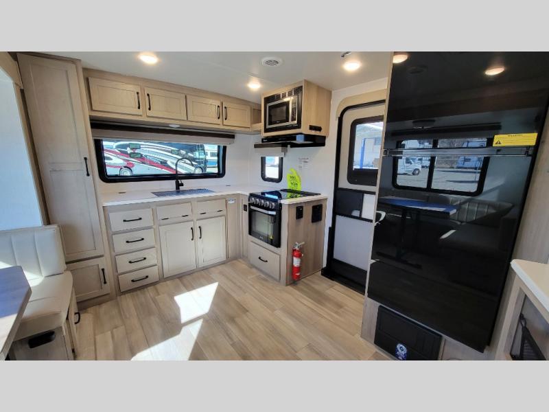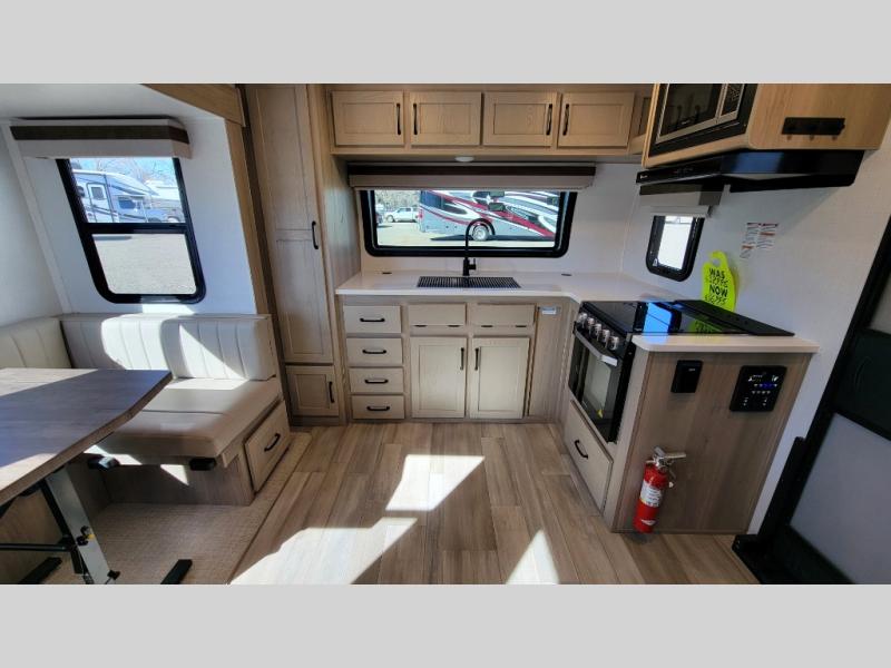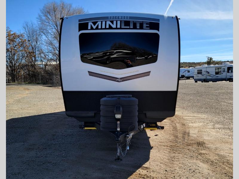 Each Rockwood Mini Lite travel trailer by Forest River is constructed with a fully laminated one-piece walkable roof, sleek frameless windows, and a six-sided full aluminum frame for strength and durability. The 12V thermostatically controlled heated tanks, plus radiant foil in the underbelly, front caps, and slide out floors will allow you to camp well into the colder months, and the 200W roof solar panel will be perfect for a little off-gridding. Each model includes solid surface kitchen countertops, solid wood cabinet doors, night roller shades, plus many more interior features. Having a Teton all in one Wi-Fi booster/LTE prep and antenna on board will allow you to get some work done if it's needed, and the power tongue jack provides hassle-free set up, so you can enjoy more time relaxing!