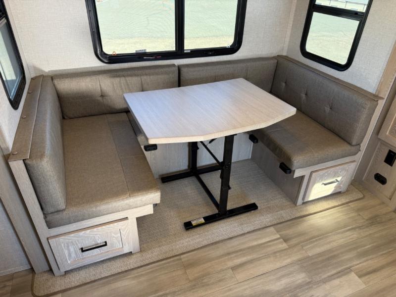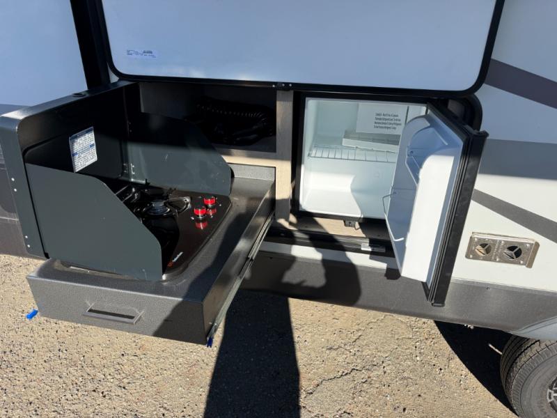 Each Rockwood Mini Lite travel trailer by Forest River is constructed with a fully laminated one-piece walkable roof, sleek frameless windows, and a six-sided full aluminum frame for strength and durability. The 12V thermostatically controlled heated tanks, plus radiant foil in the underbelly, front caps, and slide out floors will allow you to camp well into the colder months, and the 200W roof solar panel will be perfect for a little off-gridding. Each model includes solid surface kitchen countertops, solid wood cabinet doors, night roller shades, plus many more interior features. Having a Teton all in one Wi-Fi booster/LTE prep and antenna on board will allow you to get some work done if it's needed, and the power tongue jack provides hassle-free set up, so you can enjoy more time relaxing!