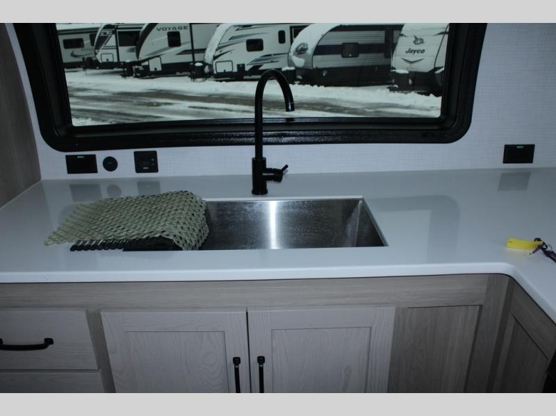 Each Rockwood Mini Lite travel trailer by Forest River is constructed with a fully laminated one-piece walkable roof, sleek frameless windows, and a six-sided full aluminum frame for strength and durability. The 12V thermostatically controlled heated tanks, plus radiant foil in the underbelly, front caps, and slide out floors will allow you to camp well into the colder months, and the 200W roof solar panel will be perfect for a little off-gridding. Each model includes solid surface kitchen countertops, solid wood cabinet doors, night roller shades, plus many more interior features. Having an Air 360+ omnidirectional antenna with wifi prep on board will allow you to get some work done if it's needed, and the power tongue jack provides hassle-free set up, so you can enjoy more time relaxing!
