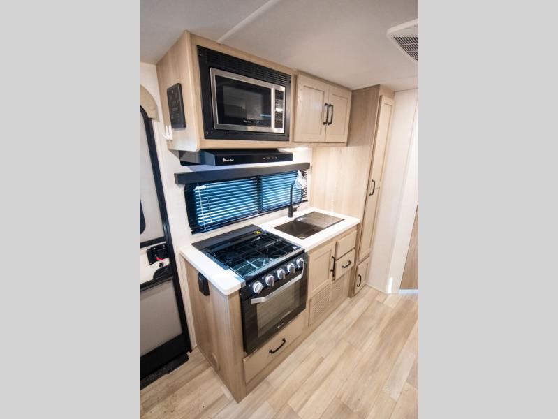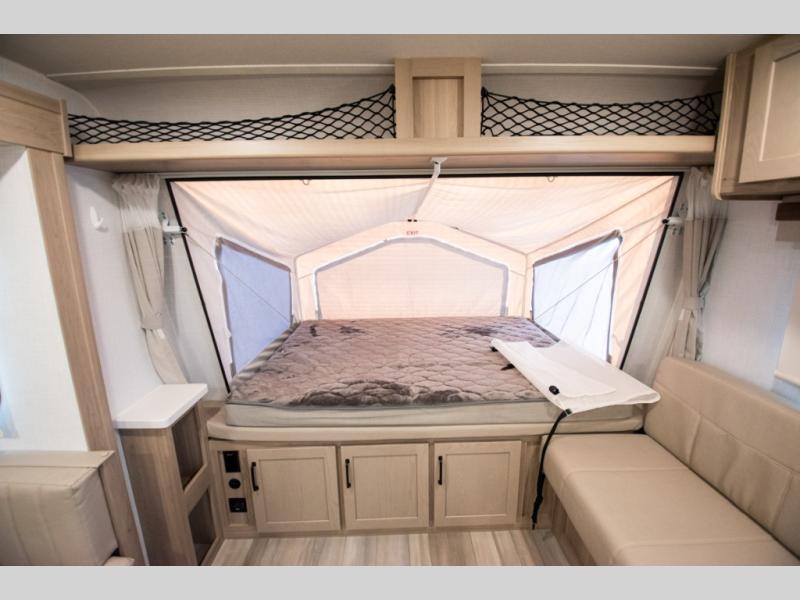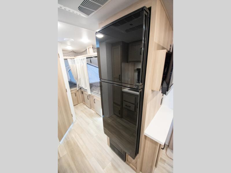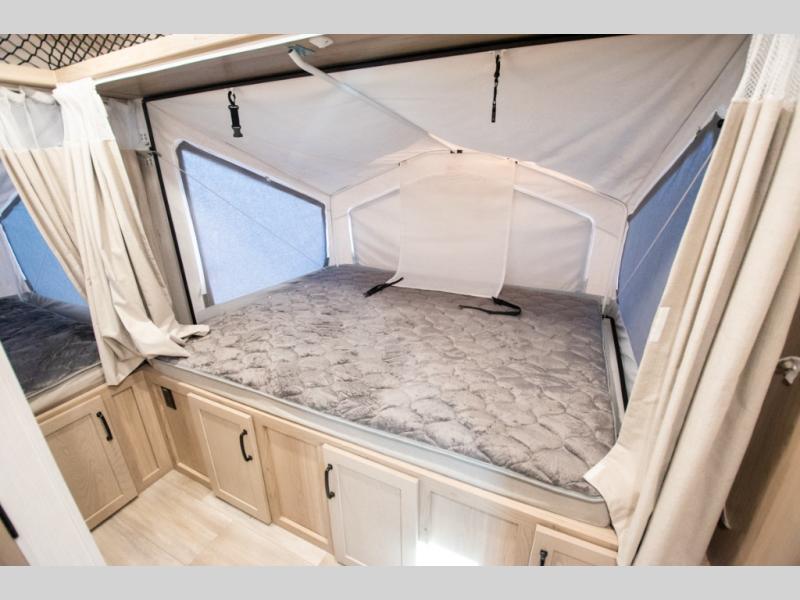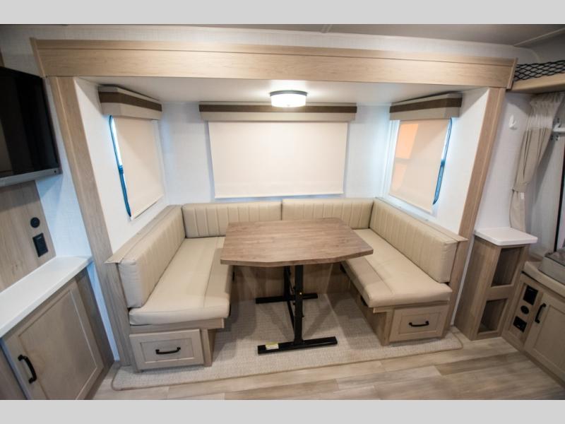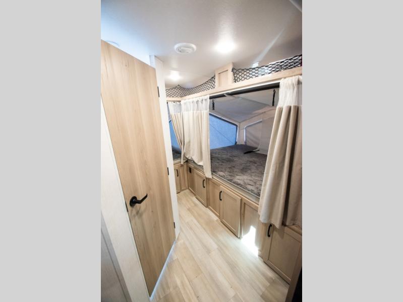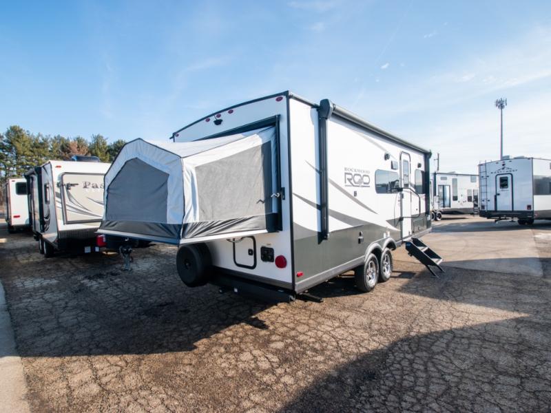With any Rockwood Roo expandable travel trailer by Forest River you will enjoy smooth towing thanks to the torsion axle, Rubber-Ryde suspension, the easy lube axles and Nev-R-Adjust brakes. The key-Alike locks provide easy access in and out of your trailer, and each model includes prep for a Air 360+Omnidirectional antenna with WiFi for all your connection needs. Each model is constructed with a vacuum laminated one-piece roof and walls, an enclosed underbelly, and frameless windows for a more sleek look. You will enjoy many interior comforts, including hardwood cabinet doors and drawer fronts, night roller shades, a bunk/fan light combo with each bed, and much more!