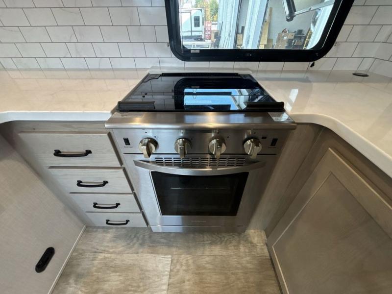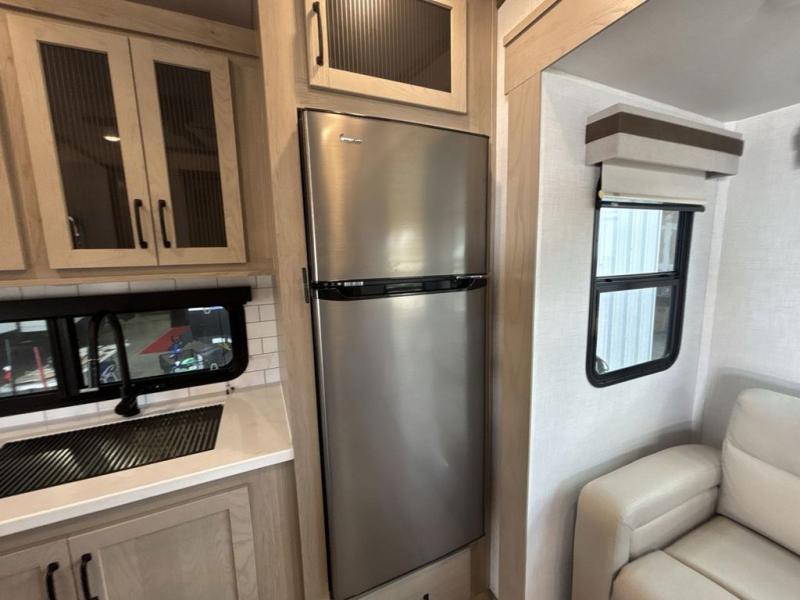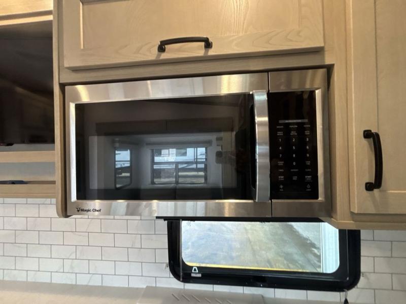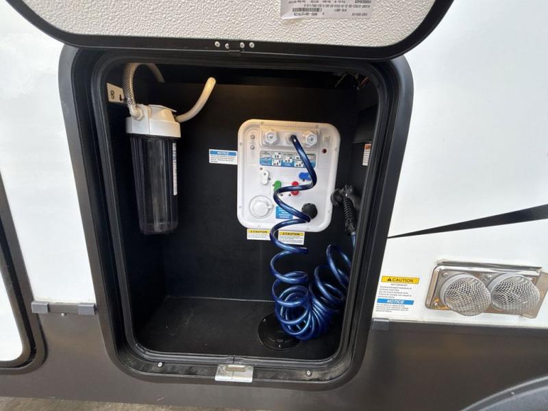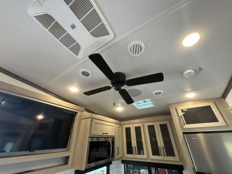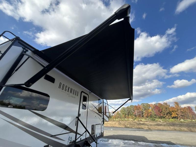 With any Rockwood Signature fifth wheel or travel trailer by Forest River RV, you will enjoy superior construction that includes laminated white fiberglass sidewalls, a radius roof with vaulted interior ceilings, plus radiant foil insulation and an enclosed underbelly for use in all types of weather. Some convenient exterior features include a power tongue jack, a torsion axle, Rubber-Ryde suspension, and a tire pressure monitor system with a monitor for added safety. The interior offers a One Touch OneControl panel with WeRV app control, for lights, awning, slides, water heater and more, and the Air 360+ omnidirectional antenna with WiFi prep lets you work while away from home if needed. You will also appreciate the interior vaulted ceilings, residential soft close doors and drawers, solid surface kitchen countertops, and designer kitchen backsplash!