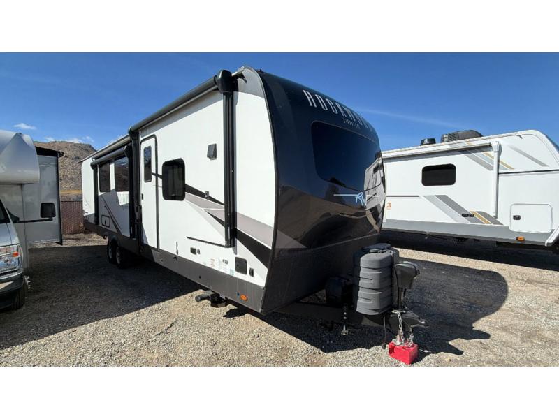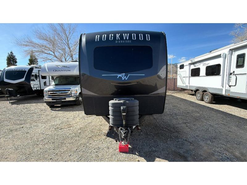 With any Rockwood Signature fifth wheel or travel trailer by Forest River RV, you will enjoy superior construction that includes laminated white fiberglass sidewalls, a radius roof with vaulted interior ceilings, plus radiant foil insulation and an enclosed underbelly for use in all types of weather. Some convenient exterior features include a power tongue jack, a torsion axle, Rubber-Ryde suspension, and a tire pressure monitor system with a monitor for added safety. The interior offers a One Touch OneControl panel with WeRV app control, for lights, awning, slides, water heater and more, and the Air 360+ omnidirectional antenna with WiFi prep lets you work while away from home if needed. You will also appreciate the interior vaulted ceilings, residential soft close doors and drawers, solid surface kitchen countertops, and designer kitchen backsplash!
