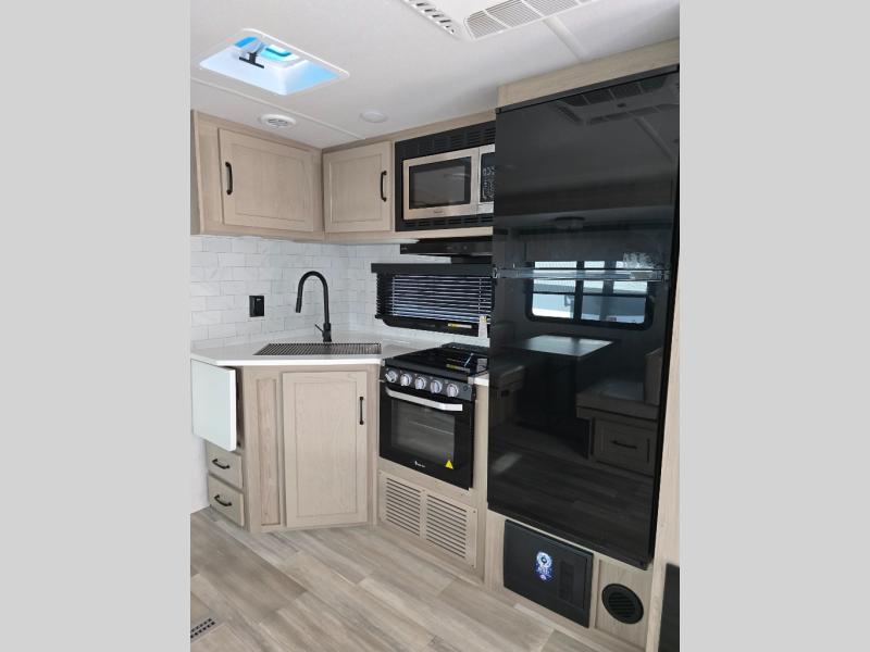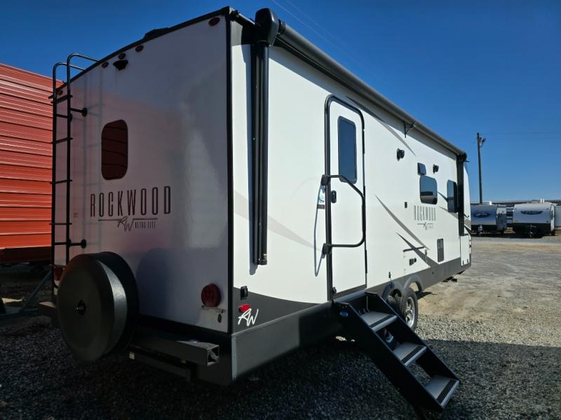 Each Rockwood Ultra Lite travel trailer by Forest River includes superior construction with a high gloss front cap, laminated white fiberglass sidewalls, and tinted frameless windows for a sleek look. You will love how easy it will be to charge a few electronics with the 200W roof solar panel with an 1800W inverter, and the AIR 360+ omnidirectional antenna with WiFi prep will let you stay connected to the outside world as you camp. The torsion axle, Rubber-Ryde suspension will make towing smooth and hassle-free, along with the nitrogen filled, Goodyear Endurance tires and the tire pressure monitor system. Interior comforts include designer kitchen backsplash, solid wood cabinet doors with hidden hinges, and night roller shades to name a few. Choose a Rockwood Ultra Lite travel trailer today!