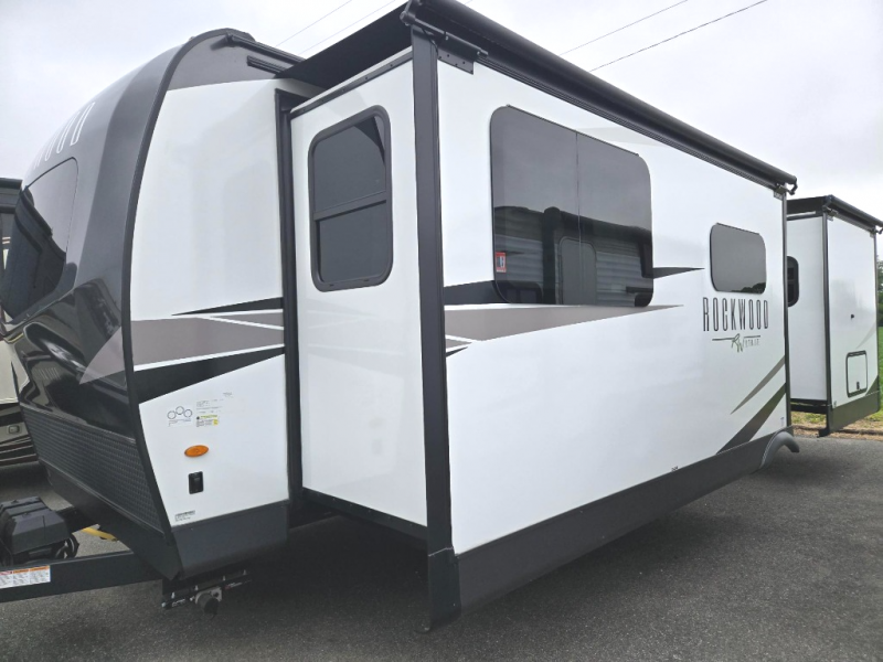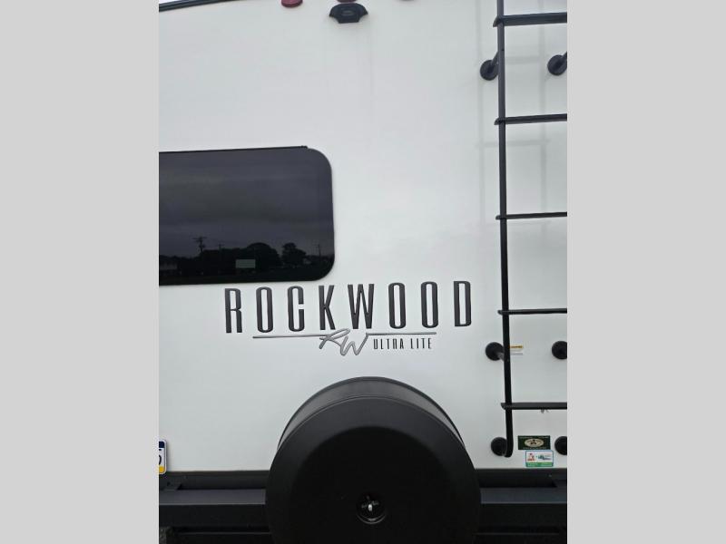 Each Rockwood Ultra Lite travel trailer by Forest River includes superior construction with a high gloss front cap, laminated white fiberglass sidewalls, and tinted frameless windows for a sleek look. You will love how easy it will be to charge a few electronics with the 200W roof solar panel with an 1800W inverter, and the AIR 360+ omnidirectional antenna with WiFi prep will let you stay connected to the outside world as you camp. The torsion axle, Rubber-Ryde suspension will make towing smooth and hassle-free, along with the nitrogen filled, Goodyear Endurance tires and the tire pressure monitor system. Interior comforts include designer kitchen backsplash, solid wood cabinet doors with hidden hinges, and night roller shades to name a few. Choose a Rockwood Ultra Lite travel trailer today!