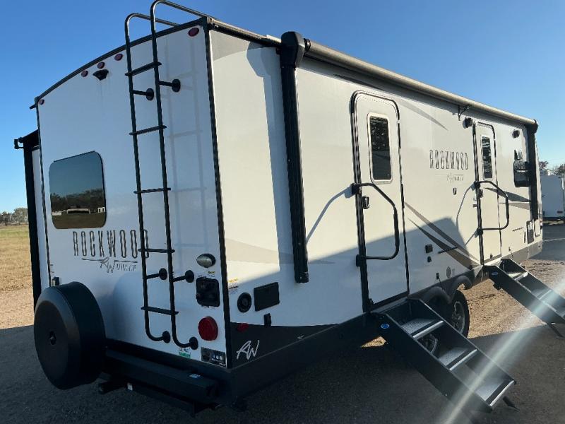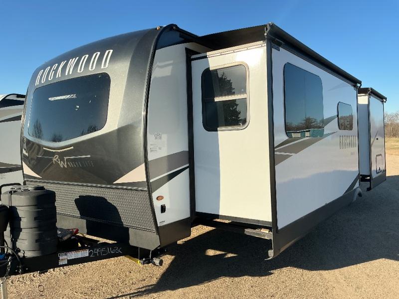 Each Rockwood Ultra Lite travel trailer by Forest River includes superior construction with a high gloss front cap, laminated white fiberglass sidewalls, and tinted frameless windows for a sleek look. You will love how easy it will be to charge a few electronics with the 200W roof solar panel with an 1800W inverter, and the AIR 360+ omnidirectional antenna with WiFi prep will let you stay connected to the outside world as you camp. The torsion axle, Rubber-Ryde suspension will make towing smooth and hassle-free, along with the nitrogen filled, Goodyear Endurance tires and the tire pressure monitor system. Interior comforts include designer kitchen backsplash, solid wood cabinet doors with hidden hinges, and night roller shades to name a few. Choose a Rockwood Ultra Lite travel trailer today!
