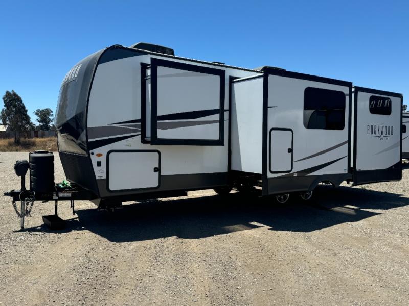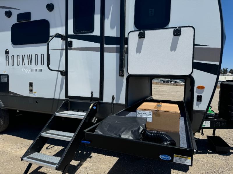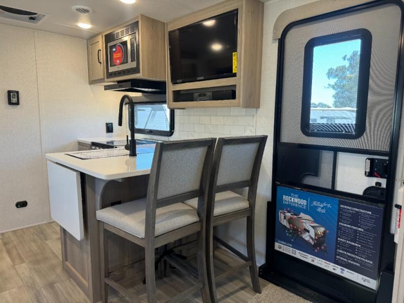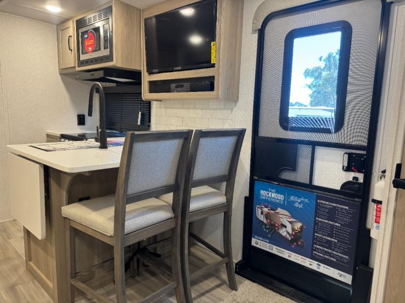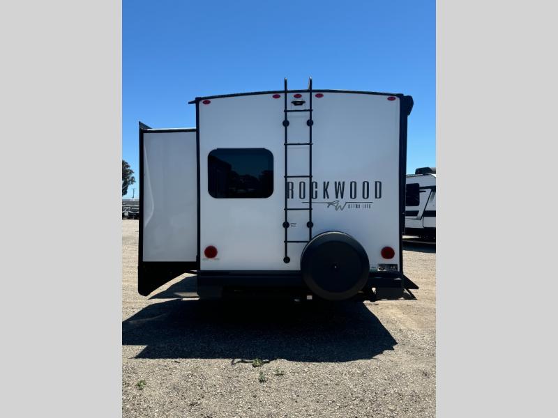 Each Rockwood Ultra Lite travel trailer by Forest River includes superior construction with a high gloss front cap, laminated white fiberglass sidewalls, and tinted frameless windows for a sleek look. You will love how easy it will be to charge a few electronics with the 200W roof solar panel with an 1800W inverter, and the AIR 360+ omnidirectional antenna with WiFi prep will let you stay connected to the outside world as you camp. The torsion axle, Rubber-Ryde suspension will make towing smooth and hassle-free, along with the nitrogen filled, Goodyear Endurance tires and the tire pressure monitor system. Interior comforts include designer kitchen backsplash, solid wood cabinet doors with hidden hinges, and night roller shades to name a few. Choose a Rockwood Ultra Lite travel trailer today!