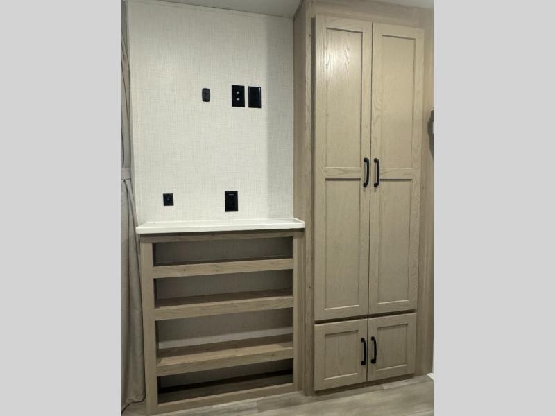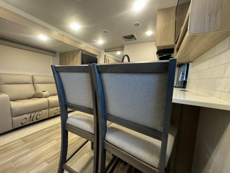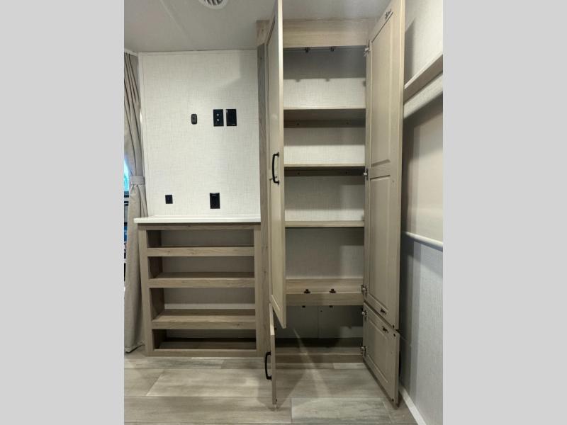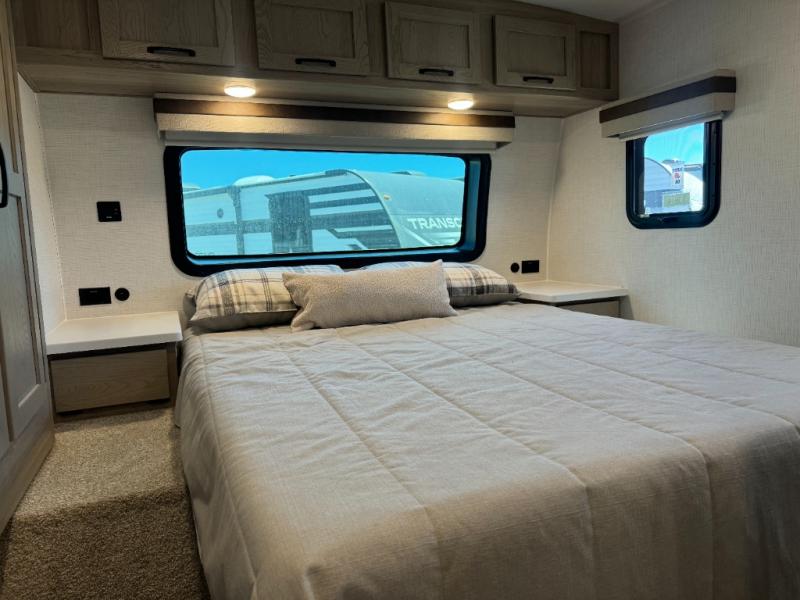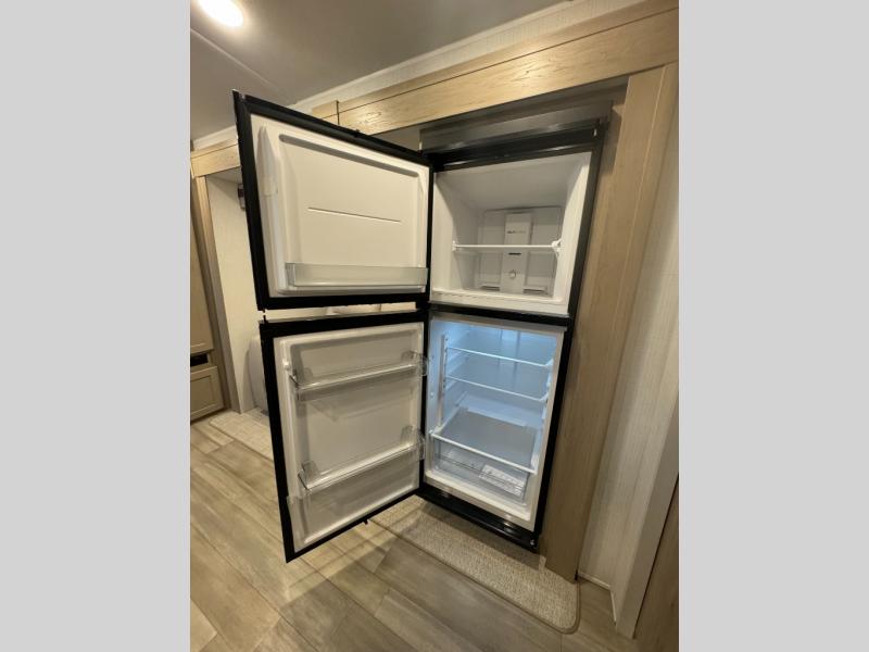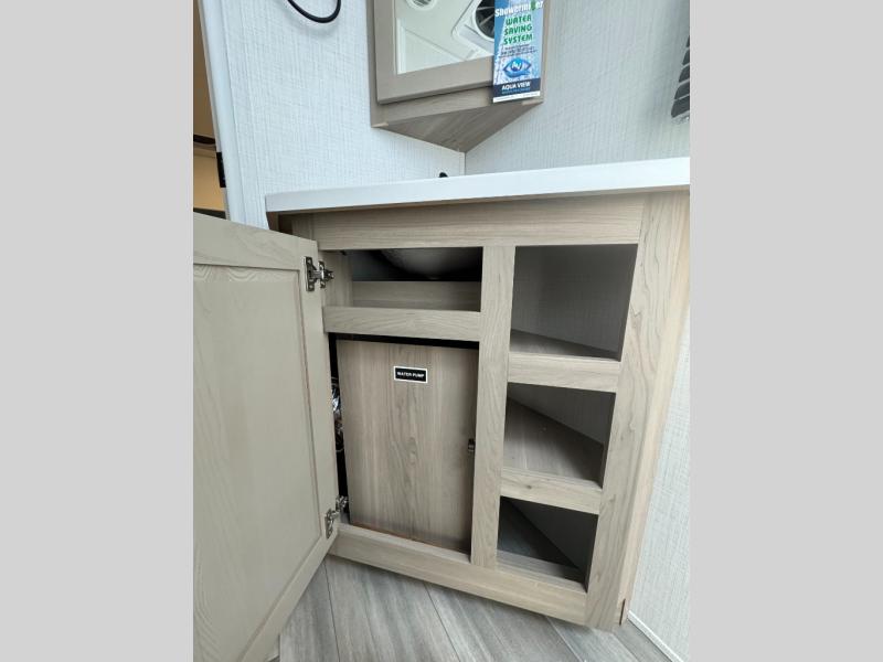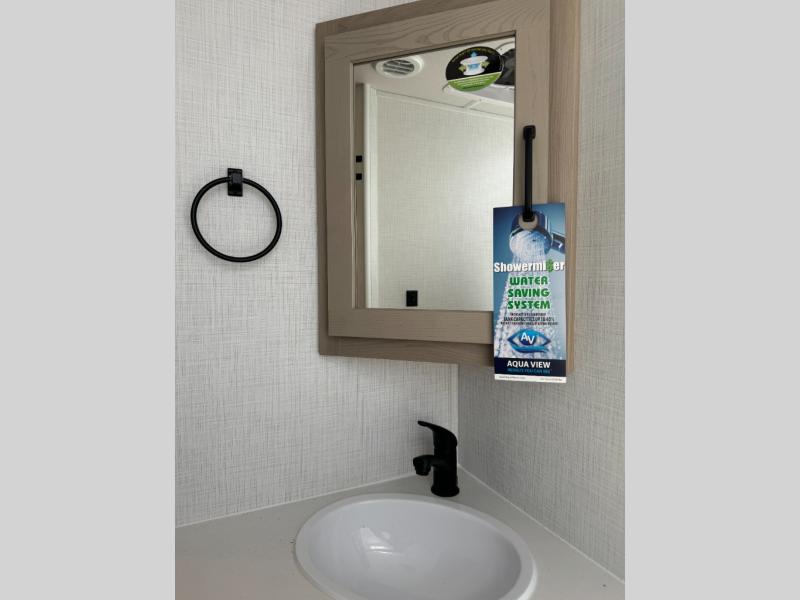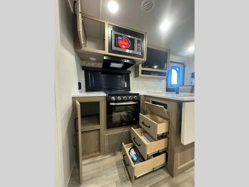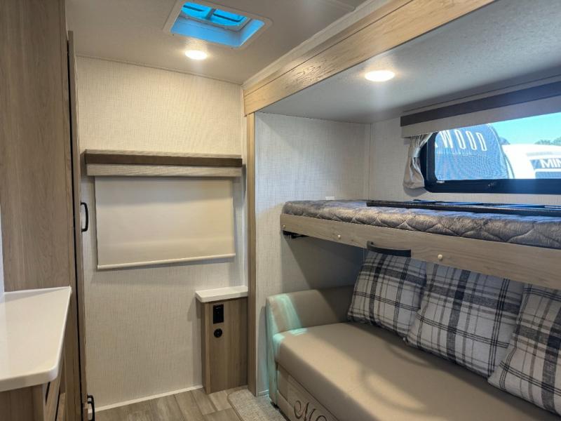 This is the perfect travel trailer to camp with friends and family since it has a private bunkhouse in the back with a flip-up bunk and a 68" sofa. The full bath is close by, as well as the main entry door for convenience. You'll find the second entry door leading into the front private bedroom that includes a queen-size bed, a wardrobe slide out, and an optional TV if you enjoy movies in bed. The U-shaped kitchen includes everything you need to prepare meals each day, and there is even an exterior griddle if you like to cook outside. In the evening, your crew can get comfortable on the theater seat or choose the optional hide-a-bed sofa if you're needing more sleeping space!