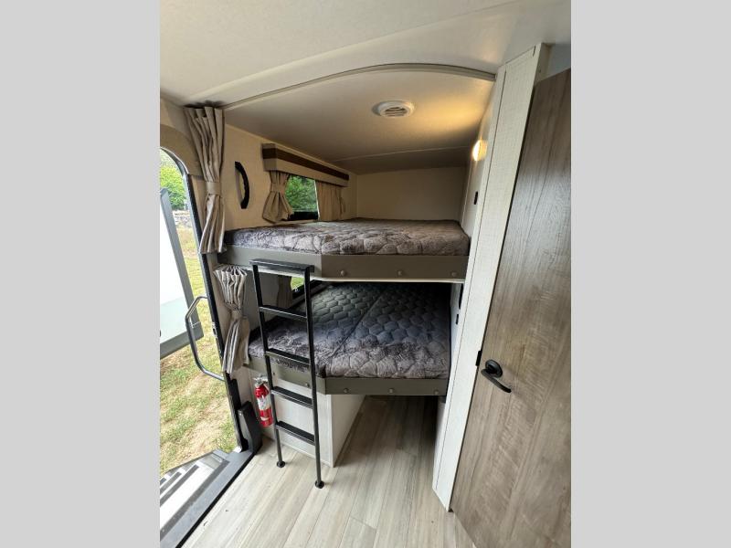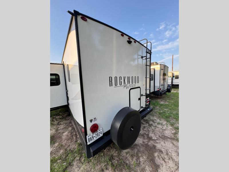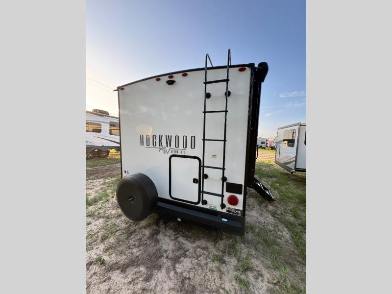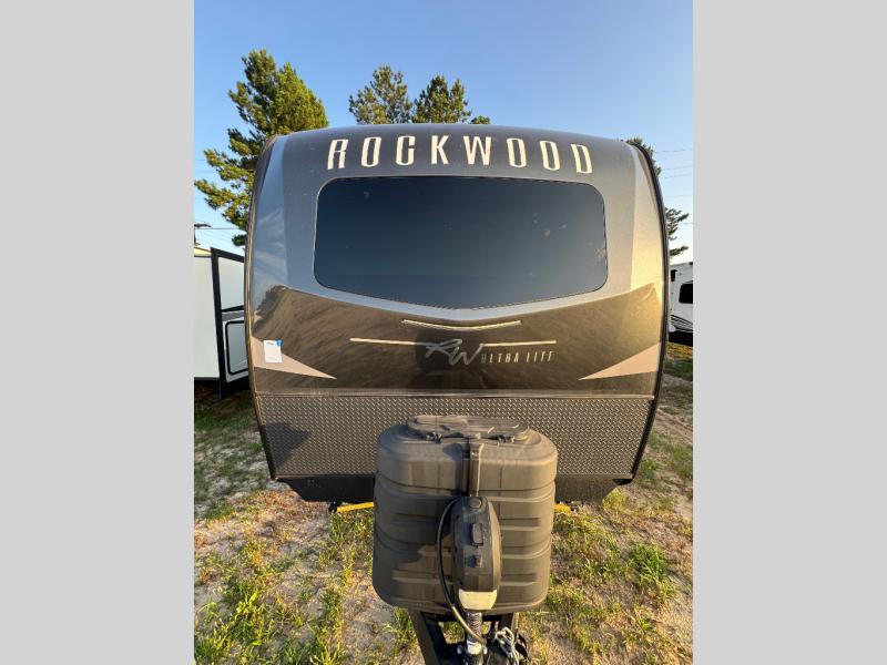 Each Rockwood Ultra Lite travel trailer by Forest River includes superior construction with a high gloss front cap, laminated white fiberglass sidewalls, and tinted frameless windows for a sleek look. You will love how easy it will be to charge a few electronics with the 200W roof solar panel with an 1800W inverter, and the AIR 360+ omnidirectional antenna with WiFi prep will let you stay connected to the outside world as you camp. The torsion axle, Rubber-Ryde suspension will make towing smooth and hassle-free, along with the nitrogen filled, Goodyear Endurance tires and the tire pressure monitor system. Interior comforts include designer kitchen backsplash, solid wood cabinet doors with hidden hinges, and night roller shades to name a few. Choose a Rockwood Ultra Lite travel trailer today!