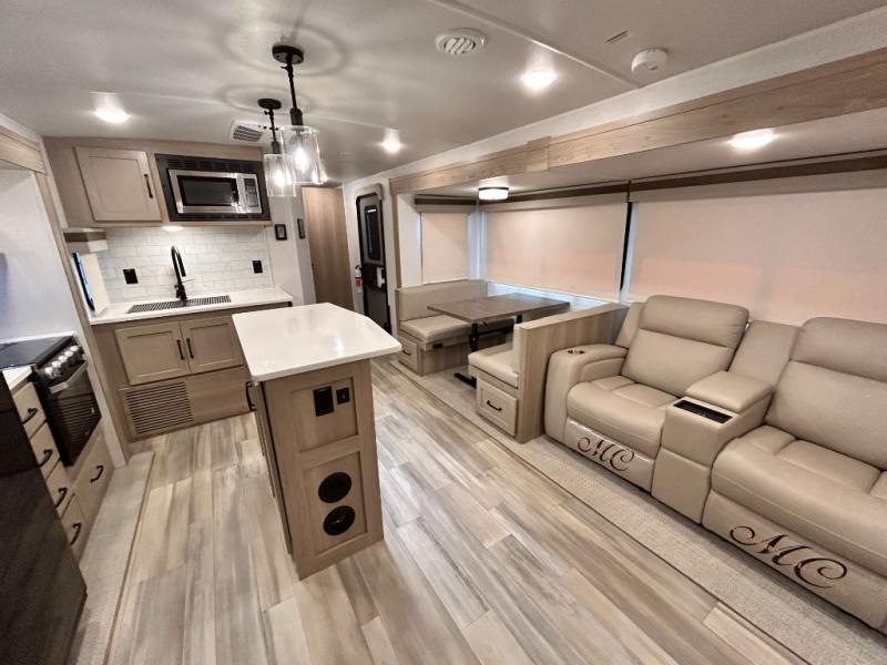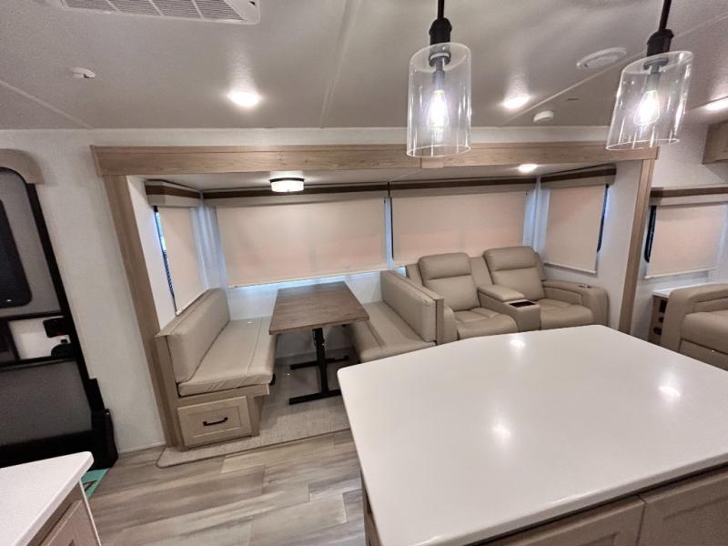 Rear Living / 2ND ROOF AC W/HEAT / FREE STANDING DINETTE/ KING BED/ TWO 200W SOLAR PANELS