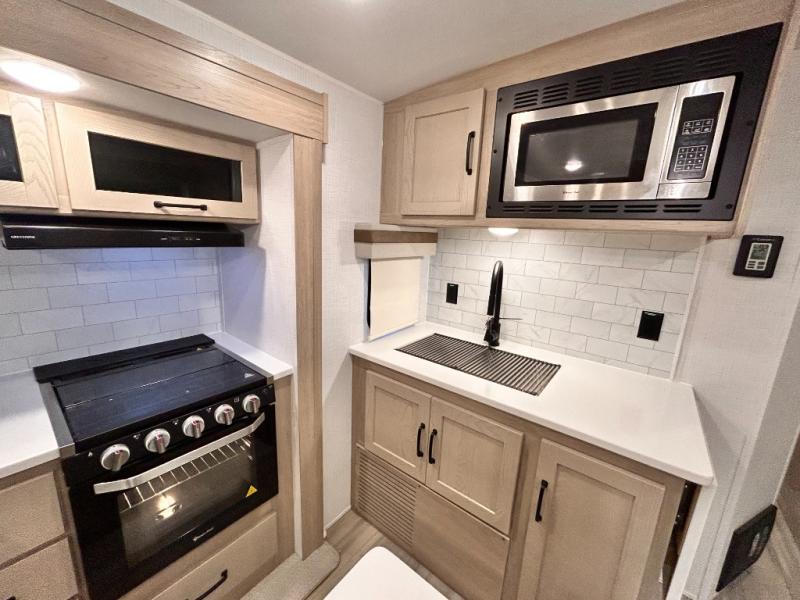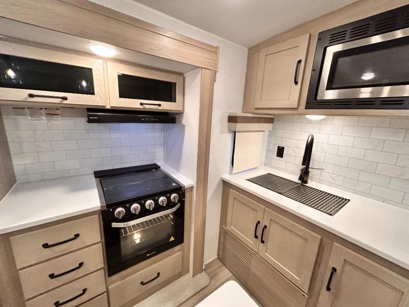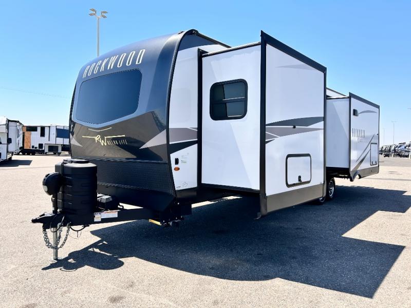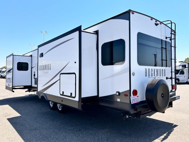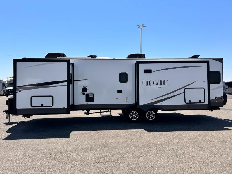 Each Rockwood Ultra Lite travel trailer by Forest River includes superior construction with a high gloss front cap, laminated white fiberglass sidewalls, and tinted frameless windows for a sleek look. You will love how easy it will be to charge a few electronics with the 200W roof solar panel with an 1800W inverter, and the AIR 360+ omnidirectional antenna with WiFi prep will let you stay connected to the outside world as you camp. The torsion axle, Rubber-Ryde suspension will make towing smooth and hassle-free, along with the nitrogen filled, Goodyear Endurance tires and the tire pressure monitor system. Interior comforts include designer kitchen backsplash, solid wood cabinet doors with hidden hinges, and night roller shades to name a few. Choose a Rockwood Ultra Lite travel trailer today!