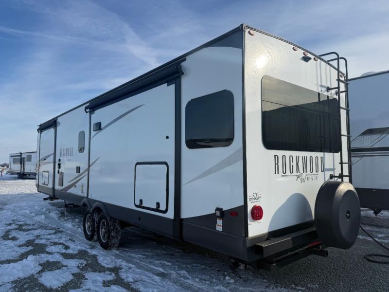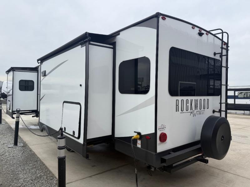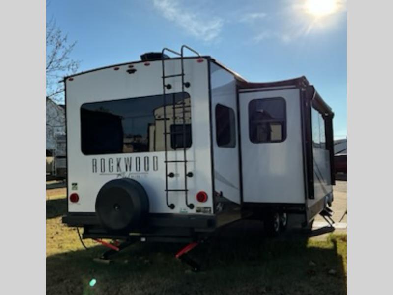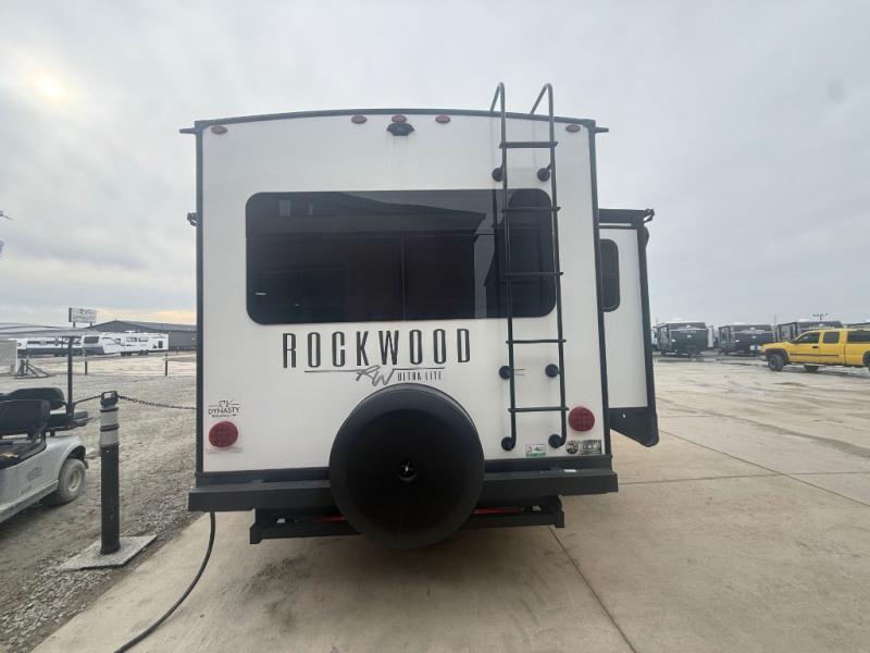 Each Rockwood Ultra Lite travel trailer by Forest River includes superior construction with a high gloss front cap, laminated white fiberglass sidewalls, and tinted frameless windows for a sleek look. You will love how easy it will be to charge a few electronics with the 200W roof solar panel with an 1800W inverter, and the AIR 360+ omnidirectional antenna with WiFi prep will let you stay connected to the outside world as you camp. The torsion axle, Rubber-Ryde suspension will make towing smooth and hassle-free, along with the nitrogen filled, Goodyear Endurance tires and the tire pressure monitor system. Interior comforts include designer kitchen backsplash, solid wood cabinet doors with hidden hinges, and night roller shades to name a few. Choose a Rockwood Ultra Lite travel trailer today!
