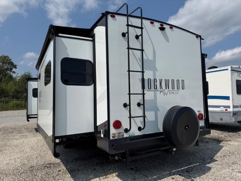 Each Rockwood Ultra Lite travel trailer by Forest River includes superior construction with a high gloss front cap, laminated white fiberglass sidewalls, and tinted frameless windows for a sleek look. You will love how easy it will be to charge a few electronics with the 200W roof solar panel with an 1800W inverter, and the AIR 360+ omnidirectional antenna with WiFi prep will let you stay connected to the outside world as you camp. The torsion axle, Rubber-Ryde suspension will make towing smooth and hassle-free, along with the nitrogen filled, Goodyear Endurance tires and the tire pressure monitor system. Interior comforts include designer kitchen backsplash, solid wood cabinet doors with hidden hinges, and night roller shades to name a few. Choose a Rockwood Ultra Lite travel trailer today!