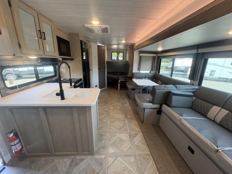 As you get away for the weekend to enjoy nature's beauty, you'll be so glad that you chose to bring this Salem travel trailer along! The full kitchen with its three-burner cooktop and walk-in pantry will allow you to prep meals whenever it is convenient for you, and the large slide that contains the extremely functional Versa Lounge will deliver extra space to the interior so that you don't feel cramped. Your kids will be able to invite a friend or two because of the double-size bunks that are in the back, and since these bunks are right next to the full bathroom with a walk-in shower, your kids won't have to search far in the middle of the night.