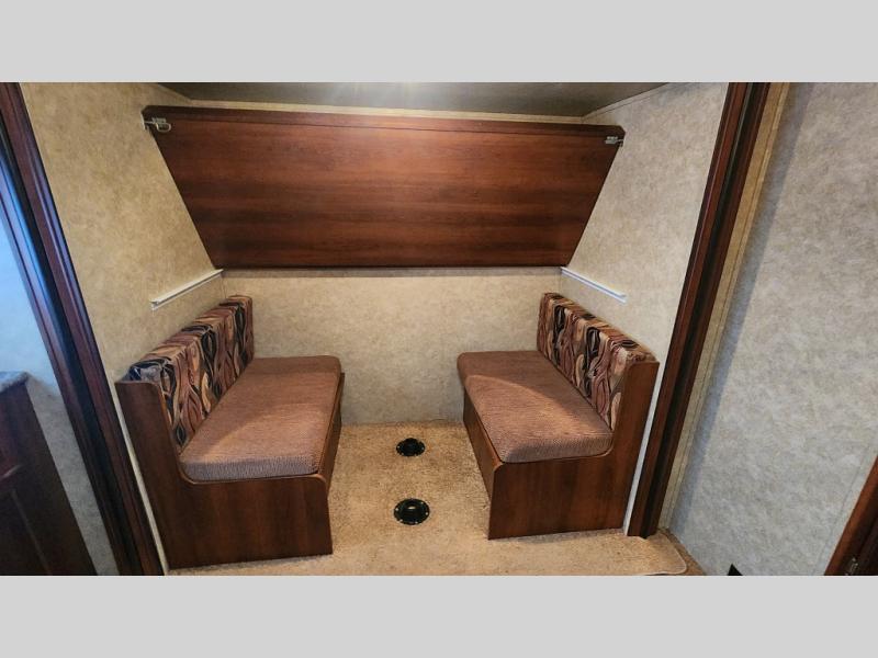 With a spacious kitchen and panoramic windows, this travel trailer is sure to stand out! The Versa Lounge is customizable for you to reconfigure for your needs. Your nights will be spent in true comfort by playing games at the booth dinette or relaxing in one of the two chairs by the fireplace. You can either cook a delicious meal in the rear kitchen or you can use the exterior camp kitchen to breathe in some fresh air while you cook outdoors. After a fun-filled day, you can rinse off in the walk-in shower then head to the front private bedroom where you will find a Versa-Tilt custom king bed for a good night's rest!