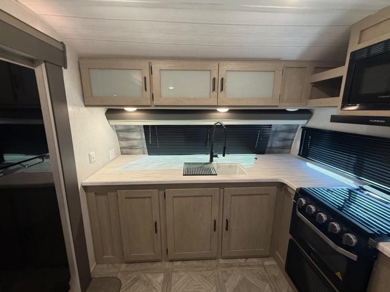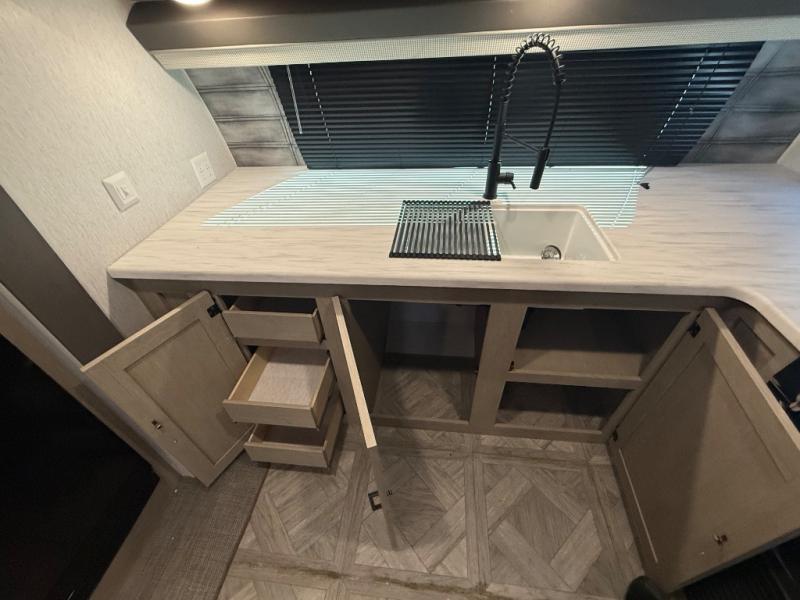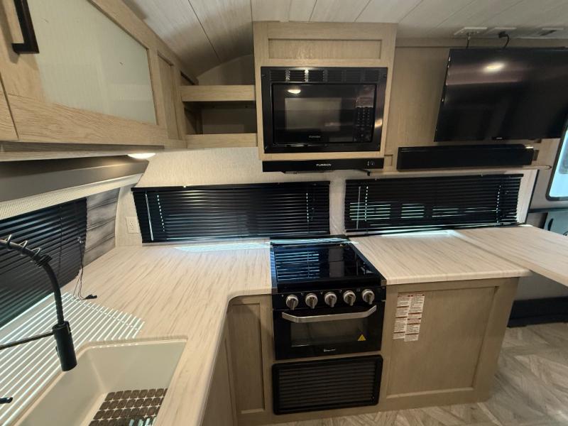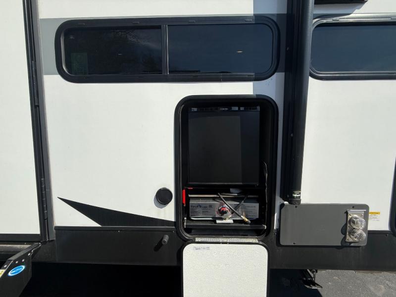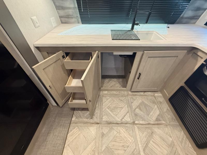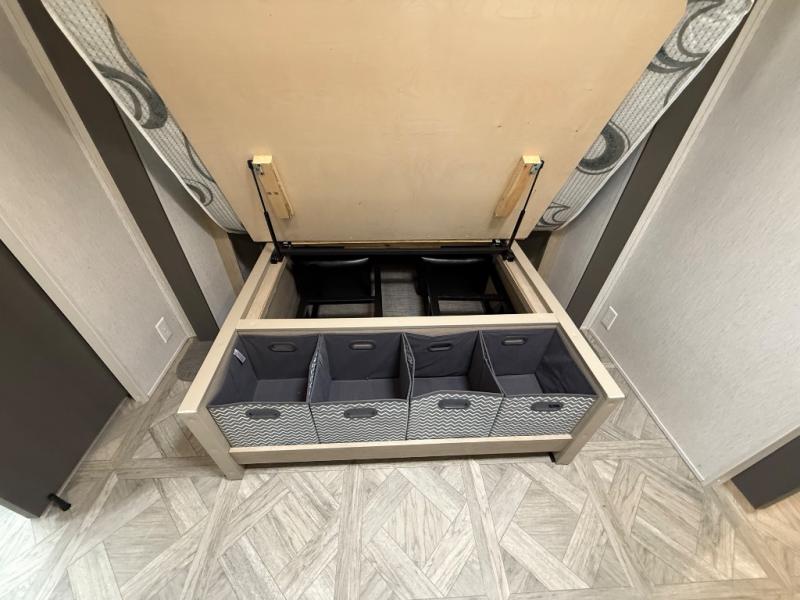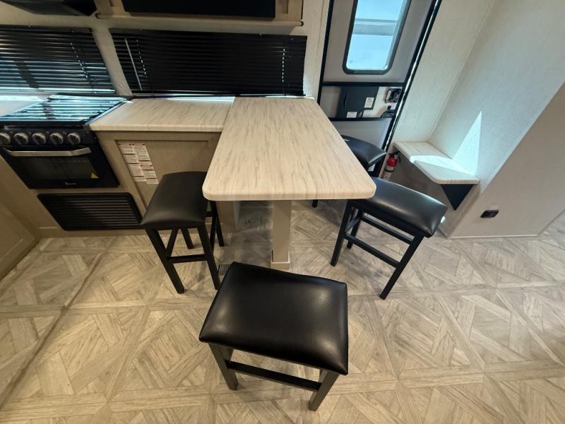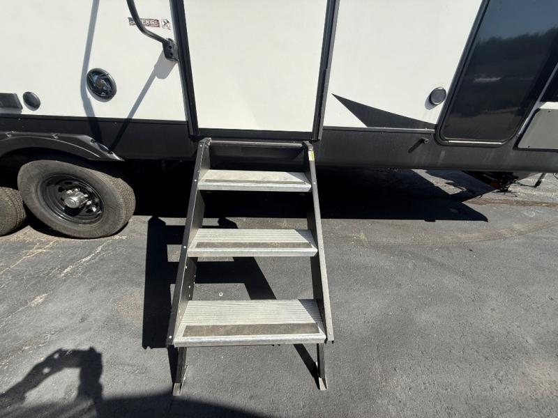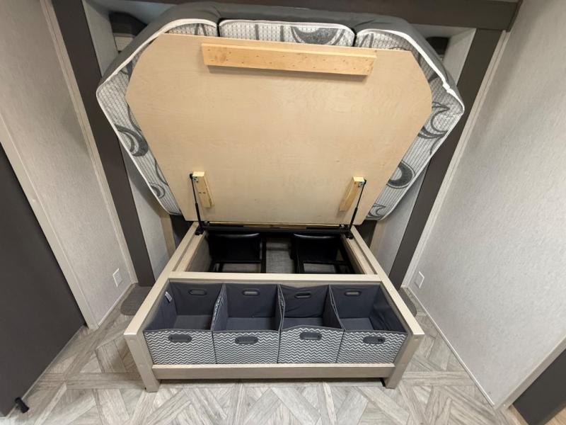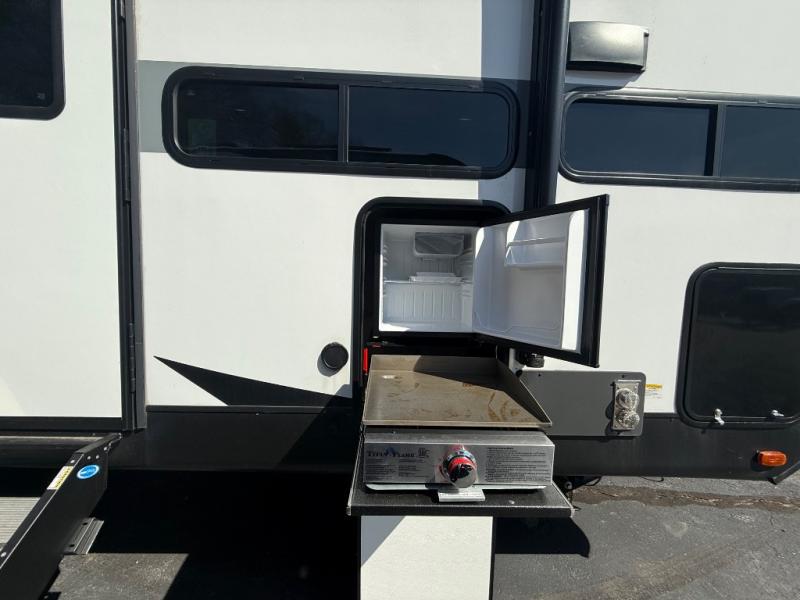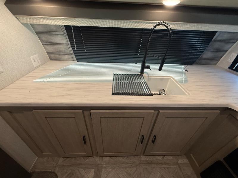 Outdoor Living: This travel trailer is built for outdoor enthusiasts. It comes with an electric awning, exterior speakers, and ample storage compartments, providing you with everything you need to enjoy your time outdoors while still having access to all the comforts of home.