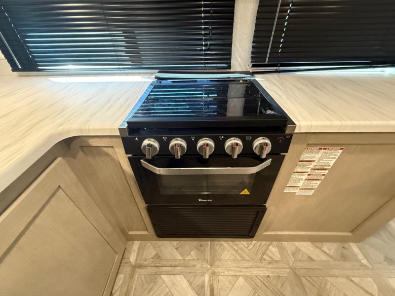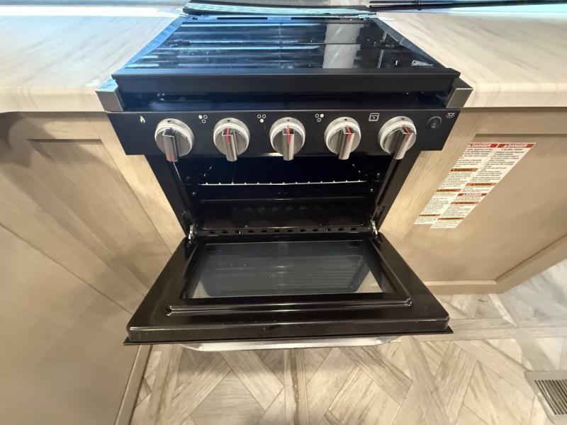 Spacious Front Kitchen: One of the standout features of the Salem 28FKGX is its large, well-equipped front kitchen. The kitchen includes modern appliances such as a three-burner stove, oven, microwave, and a double-door fridge. There’s also ample counter space and cabinets for storage, allowing you to prepare meals with ease.