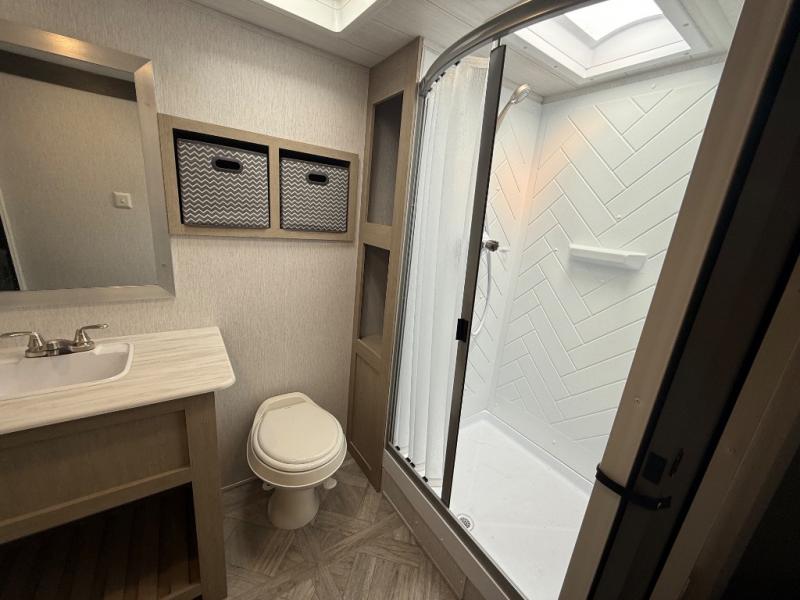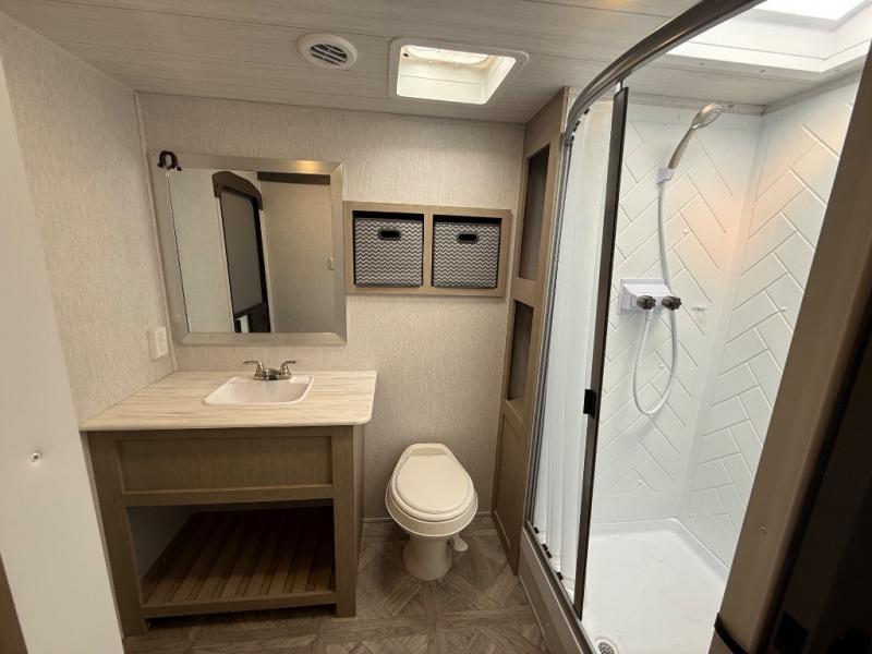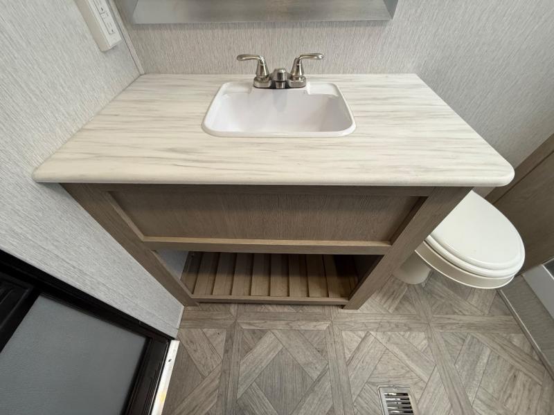 Modern Bathroom: The RV includes a full bathroom with a shower, toilet, and sink, allowing you to enjoy all the comforts of home while on the road. The bathroom is designed to maximize space and provide all the essentials for a comfortable stay.