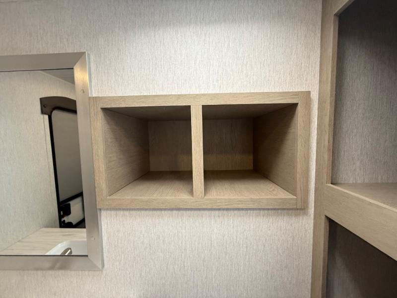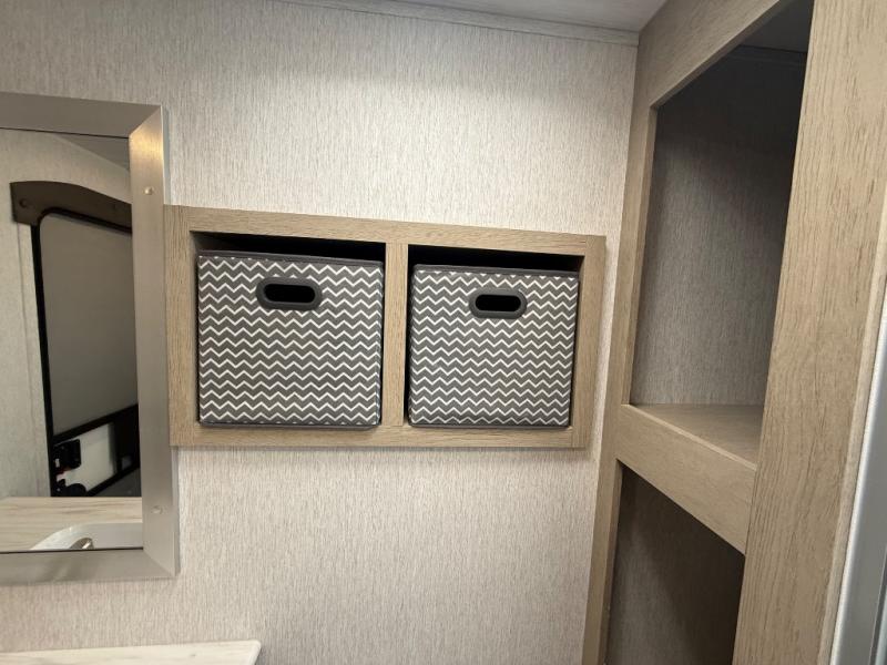 Private Bedroom: The Salem 28FKGX comes with a private rear bedroom that features a queen-size bed, providing you with a comfortable and restful space. The bedroom is equipped with overhead cabinets and wardrobes, offering plenty of storage space for clothing and personal items.