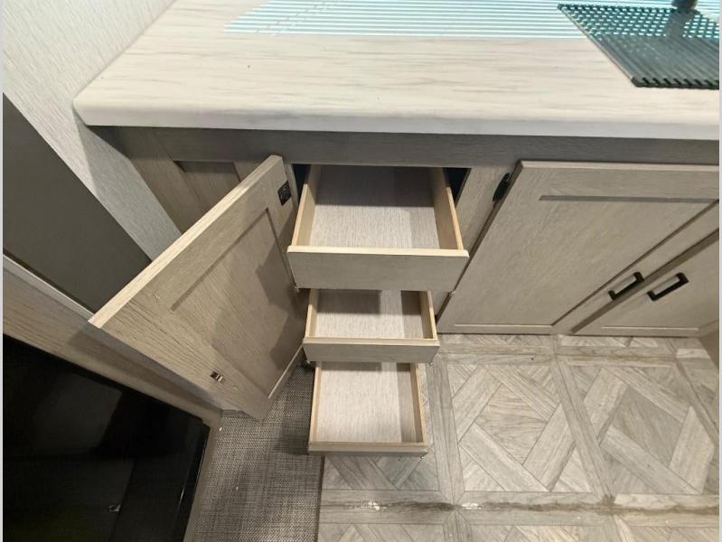 Large Windows and Natural Light: The Salem 28FKGX is designed with large windows throughout the living space, allowing natural light to flood the interior, making the trailer feel even more spacious.