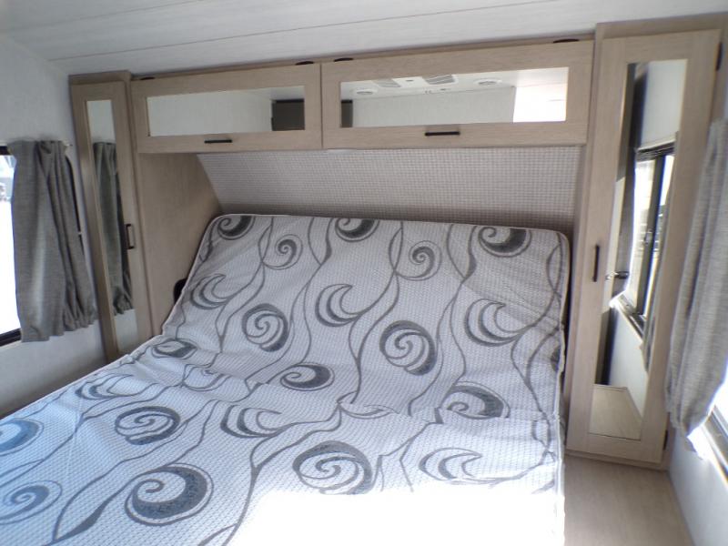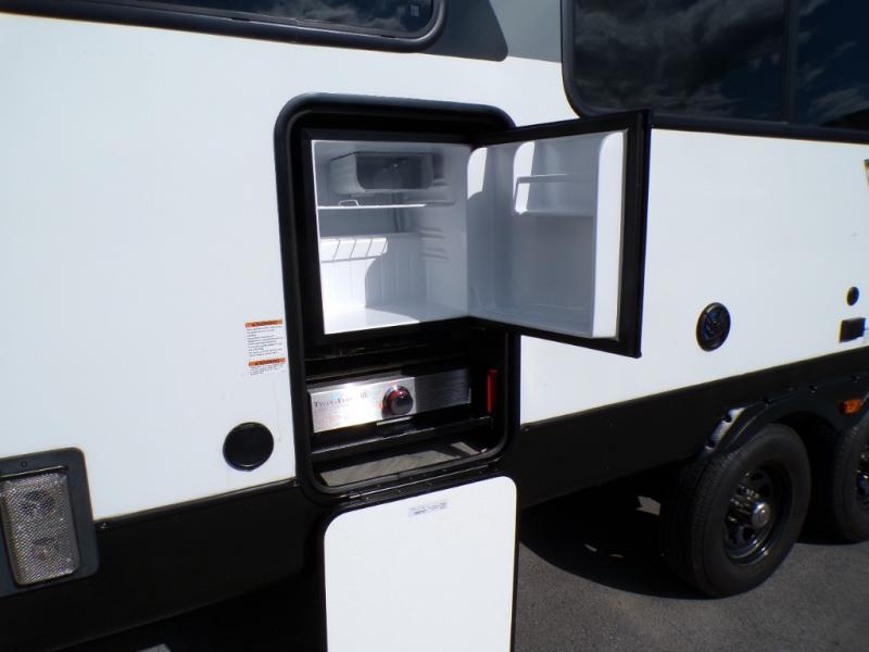 Choose any Salem View travel trailer if you are looking to bring the outdoors inside. With loads of windows you will easily be soaking up your surroundings. All models feature a cambered chassis with a 2" wall construction, 16" (or less) on center, a powder coated I-beam frame with a 3/8" walk-on roof decking and 5/8" tongue and groove plywood floor decking, plus smooth hung fiberglass exterior along with an aerodynamic front radius profile. These units feature seamless holding tanks and color coded water lines as well. The heated and enclosed underbelly allows you to camp through more seasons, and you will enjoy the power tongue jack with LED light, quick drop stabilizer jacks for easy set up, as well as a power awning with adjustable legs, and so much more!