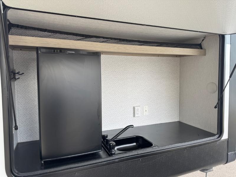 The rear private bunkhouse in this Salem travel trailer is super accommodating for your kids or your overnight guests! It has two opposing slides which provide extra floor space and a full-width closet/entertainment center which delivers extra space for backpacks and tennis shoes. The front private bedroom will be perfect for mom and dad with its custom king bed and dual closets, and any additional guests can sleep on the Versa Lounge or U-shaped dinette. Everyone will enjoy their own space when it's time to freshen up in the full bath with a walk-in shower, and the chef of the group will have all the appliances needed to make meals each day. And don't forget about the outdoor kitchen for outdoor fun!