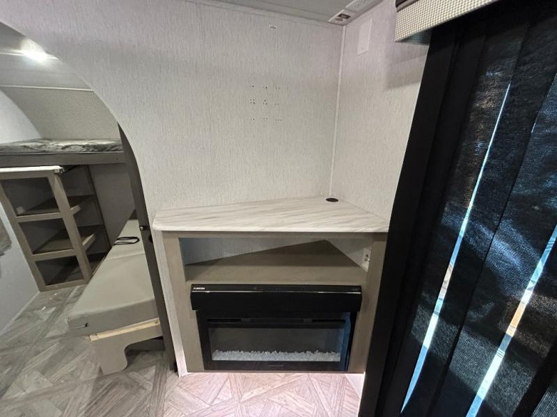 After you've had a long day of sightseeing and adventuring, you will certainly appreciate having this Salem travel trailer to come back to! If you aren't ready to stay indoors for the night, you can keep the party going outside under the 18' awning, and if you need any extra lawn chairs, you can grab them from the pass-through storage compartment. And, you don't have to stop enjoying a good fire just because you have to go inside because the interior fireplace will provide great ambiance. There are dual entry doors, with one set being patio doors, which will definitely come in handy when camping with a large group, and there is plenty of seating space on the booth dinette and versa lounge in the main living area.