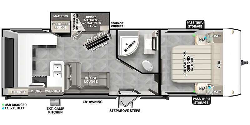Are you looking for a travel trailer blessed with a ton of versatility? The Forest River Salem Cruise Lite 24VIEW may be exactly what you want at your campsite. The 24VIEW boasts a ton of unique features including a hinged entertainment center/fireplace that, when opened, reveals a bunkroom for two. But wait… that bunkroom has an additional feature, one of the bunks can convert into a very handy desk area. Call it a bunk-office if you want! Check out the Salem Cruise Lite 24VIEW today. Receive a free year of RV Complete.