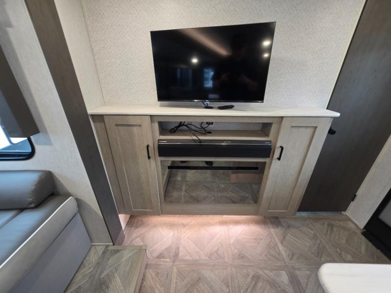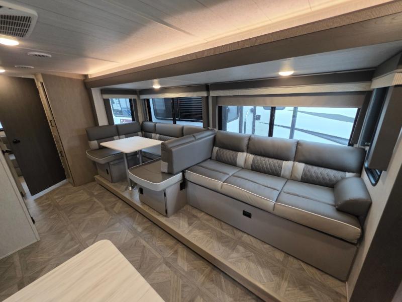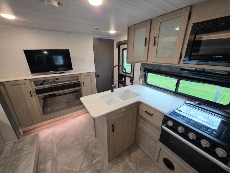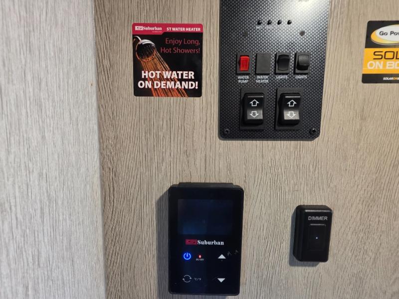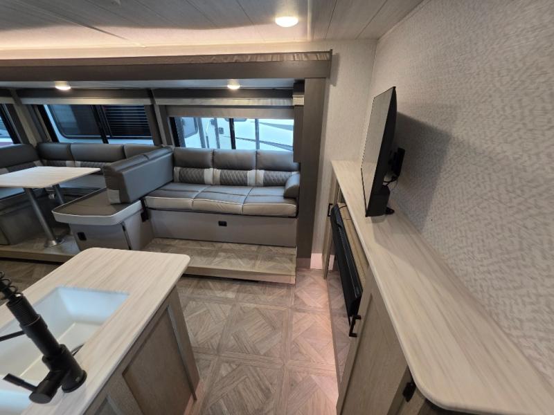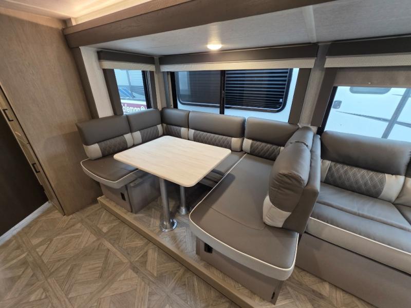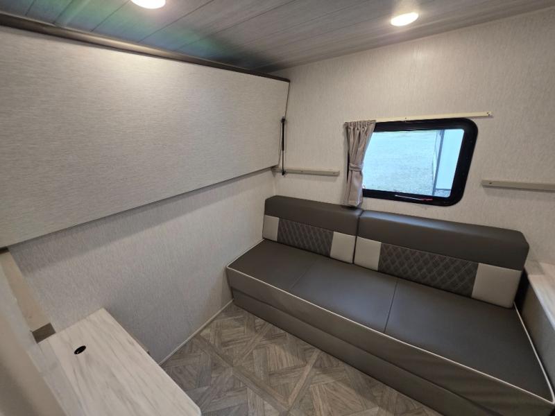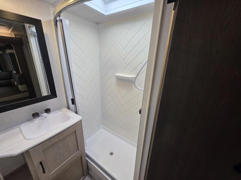 This travel trailer is new to the lineup and offers a large amount of versatility! The rear private bunkhouse has two 30" x 74" Versa-bunks and a Versa-queen bed so that more can join in on the camping fun. Start each morning feeling clean and fresh after showering in the walk-in shower with fiberglass surround then head to the front private bedroom to change. The kitchen has an oversized 11 cu. ft. 12V refrigerator to keep your perishables fresh, a three burner cooktop for meals, and a U-shaped dinette for dining, game time, or just hanging out.