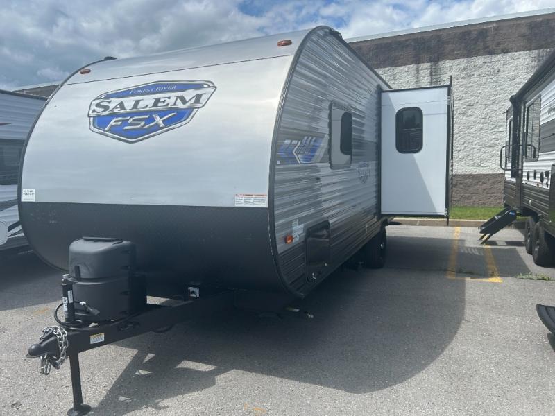 The Forest River Salem FSX travel trailers and toy hauler travel trailers are ultra comfortable and lightweight, perfect for first time or seasoned campers alike! You will love how easy it will be to relax with residential features that will make your space feel just like home, and the durable construction means you can enjoy your RV for years to come. There are a wide variety of floorplans to choose from, including couple's trailers, bunk models, and toy haulers, all with full bath and kitchen amenities and plenty of storage for all your gear!