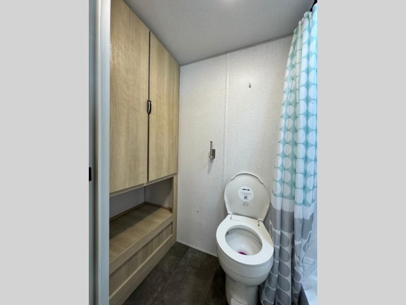 Spacious Rear Bath: A surprising amount of space with a dedicated shower and linen storage, offering privacy and comfort.